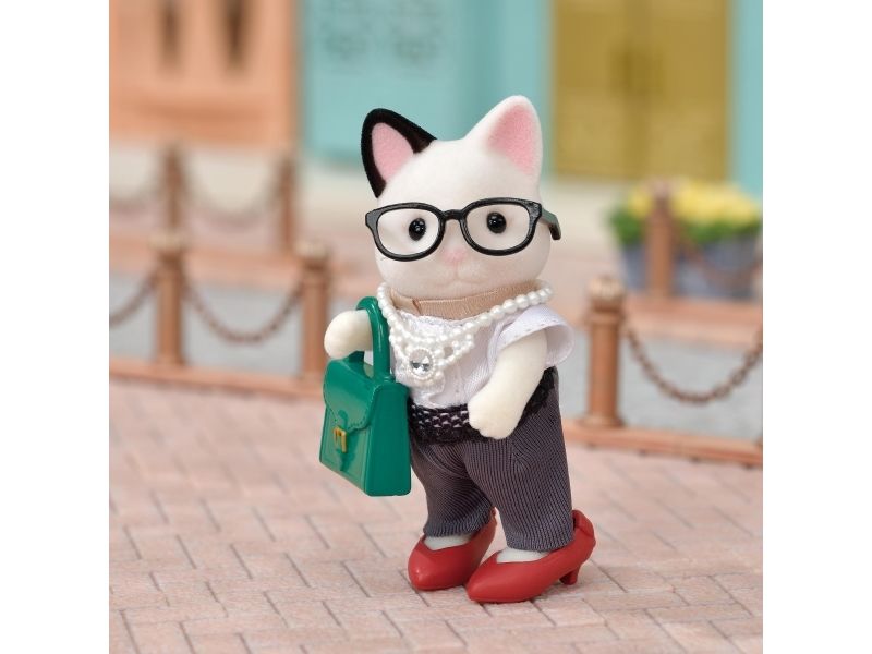 Felicia the Tuxedo Cat Older Sister, Blouse, Skirt, Trousers, High Heels, Hair Band, Handbag, Shoulder Bag, Necklace, Glasses, Shelf (a total of 11 pieces)