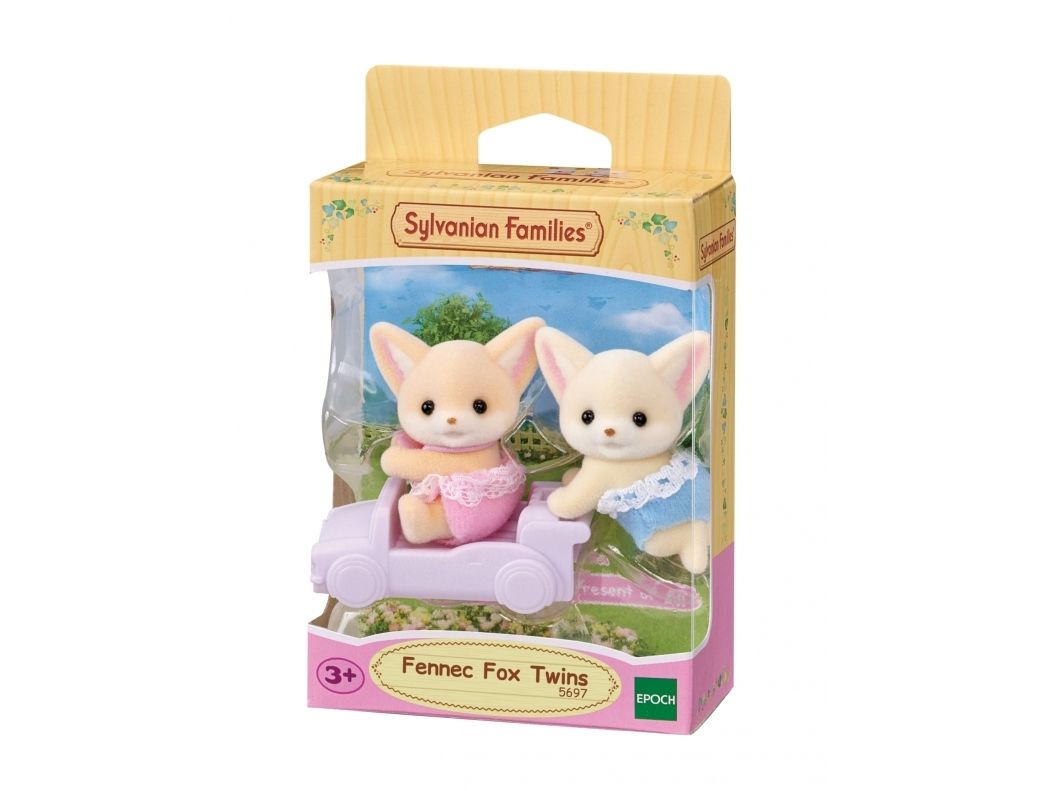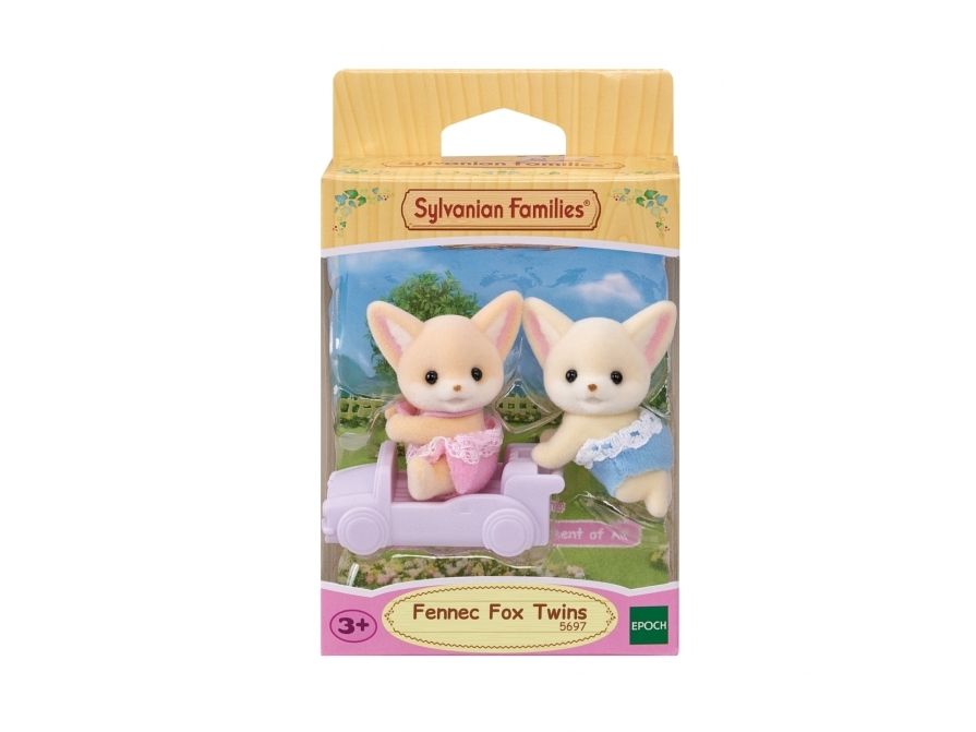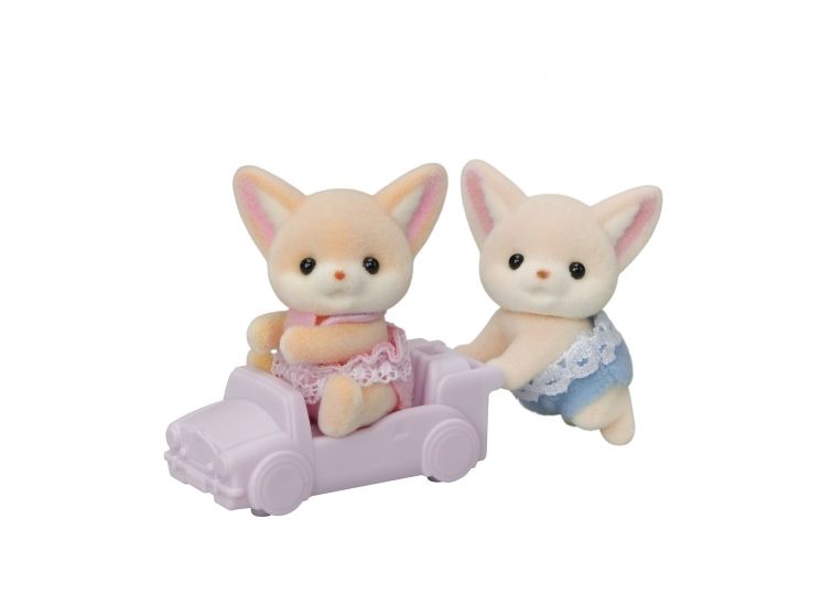 *Set featuring the Fennec Fox twins, known far and wide for their big, pointy ears. Includes Fennec Fox twins and a pushcart. The figures' heads can be moved. *Either of the twins can in ride the pushcart. *The included pushcart can be attached to pushcarts from other twin sets. *Introducing the baby Fennec Fox twins, Rocco (sitting) and Tara (crawling).