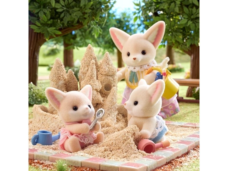 *Combine with the Fennec Fox Family, Sunny Picnic Set -Fennec Fox Sister & Baby –, and Floating Cloud Rainbow Train sets (sold separately) for fun with all the fennec fox figures. *The included pushchair can be attached to other pushcarts. Combine together for even more fun imaginative playtime!