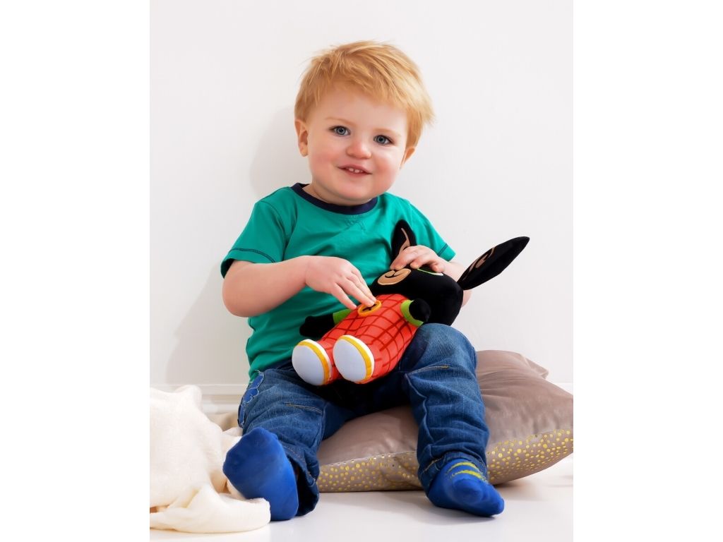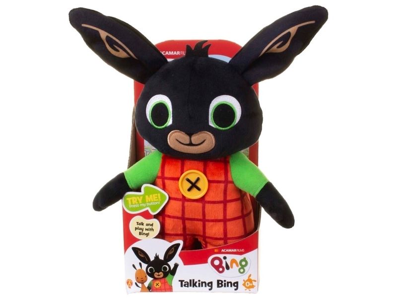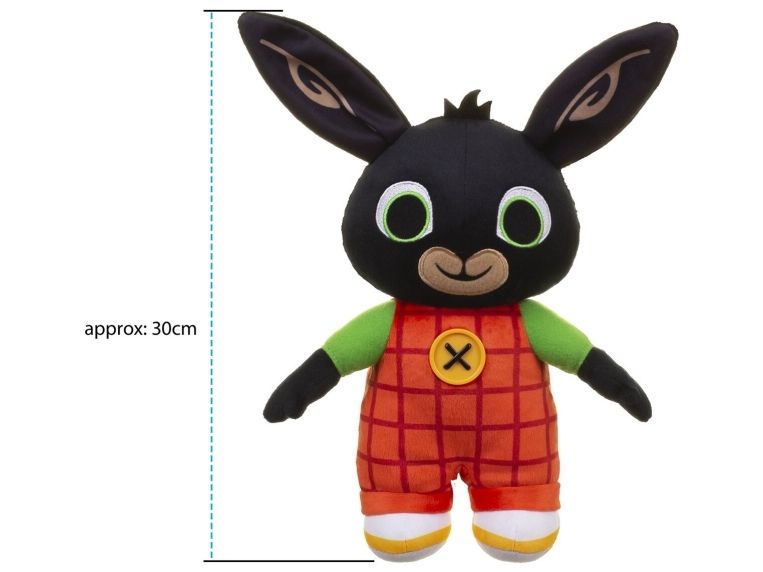 Bing Bunny is a lovable, energetic and curious preschooler who is learning that life is full of little adventures. Based on the beloved books by Ted Dewan, this animated series celebrates the joyful, messy reality of pre-school life. This cute and cuddly Bing soft toy is made in super-soft fabrics making him perfect for cuddles! The Bing and Friends Bing Soft Toy is perfectly sized to take along with you on all your adventures! Whether it’s a trip to the park or a day at nursery, Bing is the perfect companion for your little Bingster! Includes over 15 fun phrases to delight and entertain fans! 'Hi, I'm Bing! What's your name?' Simply press Bing's button to hear him talk and giggle. Bing wears his red checked dungarees just like in the show and features his iconic button. Approx size 30cm.