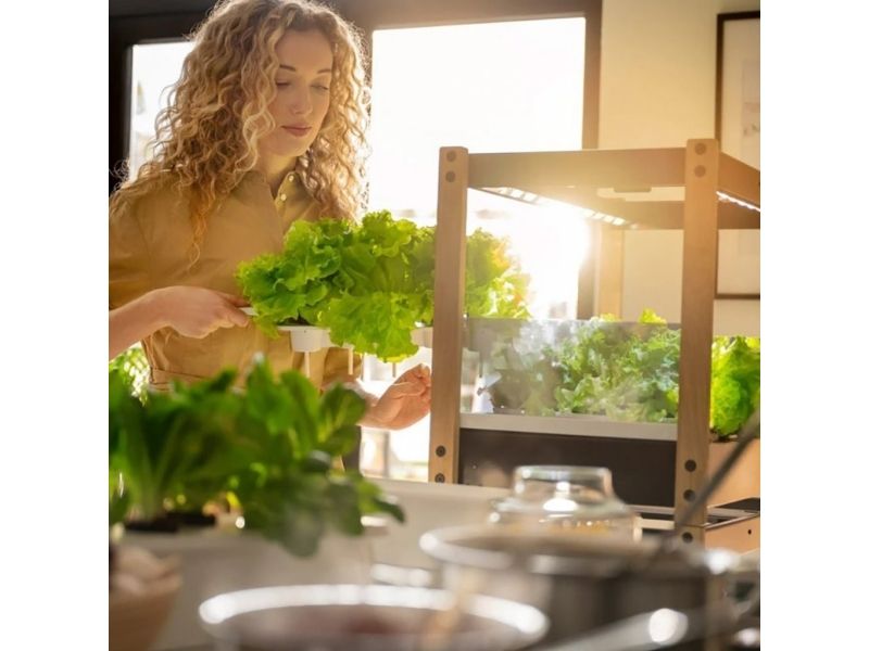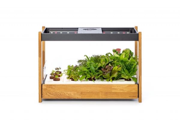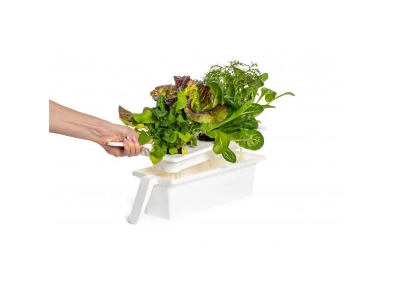 Transform your kitchen into a personal farm with the Click and Grow 25 - Black edition. This sleek and stylish system lets you cultivate a salad greens garden on your countertop. Engineered for ease and efficiency this garden enables anyone to grow fresh nutrient-rich greens without any gardening experience. With the Click and Grow 25 you'll enjoy the flavour of home-grown greens and health benefits with minimal effort.Weekly & Constant Harvest AvailabilityApp-Enabled Water & Lighting MonitoringSprouting Guarantee & Sustainable Energy UseCustomizable & High-Quality DesignNutritious Home-Grown GreensWeekly & Constant Harvest Availability The Click and Grow 25 ensures a constant supply of fresh produce at your fingertips. With a guaranteed sprouting system you can experience the joy of harvesting fresh greens every week. Say goodbye to store-bought salad mixes and hello to a continual abundance of crisp home-grown leaves for your daily meals. App-Enabled Water & Lighting Monitoring Manage your indoor garden with the touch of a button using the Click and Grow mobile app. This smart feature allows you to monitor your garden's water levels and lighting schedule effortlessly. It gives you complete control over your plants' environment ensuring that your salad greens receive the optimum care for steady and robust growth. Sprouting Guarantee & Sustainable Energy Use The Click and Grow 25's modern technology offers a sprouting guarantee ensuring that your plants will grow. The energy-efficient system also highlights sustainable living by reducing your carbon footprint through low energy consumption. Grow your leafy greens confidently with this eco-friendly garden. Customizable & High-Quality Design Our Click and Grow 25 is a masterpiece of function and form. Its high-quality natural oak and metal framework brings elegance to your living space. The modular design adapts effortlessly to your needs whether growing 25 pods or extending to hundreds creating a customizable garden that fits into any home. Nutritious Home-Grown Greens Packed with flavour and nutrition your Click and Grow 25 greens will surely be an instant hit on your plate. Growing your greens ensures you're getting the freshest produce without harmful additives straight from your indoor garden to your table. Start enjoying the countless health benefits that come with home-grown greens today. Package IncludesClick and Grow 25 in black with a stylish natural oak and metal frame with wooden legs and panels - WhiteSmart app-controlled grow lights and an integrated humidity sensorA bumper 54x pod pack to kick-start your garden including an assortment of salad greens: Leaf Mustard (9x) Red Kale (9x) Romaine Lettuce (18x) and Green Lettuce (18x)Manual and tools for easy assemblyPower adapter2x LED grow lights1x 9 litre / 3.37-gallon water tank and sliding base for the water tank6x Grow Flow? trays for plant pods1x Grow Flow? tray holderTray cover for faster germinationProduct SpecificationsColour: WhiteEach module has six trays: 1 for harvesting or storing the herbs you plan to harvest and 5 to always have in the garden to produce new greens.Measurements: W: 75.5 cm x H: 51 cm x D: 43 cmFloor area: 3.2 sq ft | 0.3 m².Plant capacity: 25 plants per 1 moduleFive trays per module five plants in each tray (5x5)Vertically stackable; 3 modules maxTwo finishes/colours available - choose between oak wood + white panels or oak wood + black panels