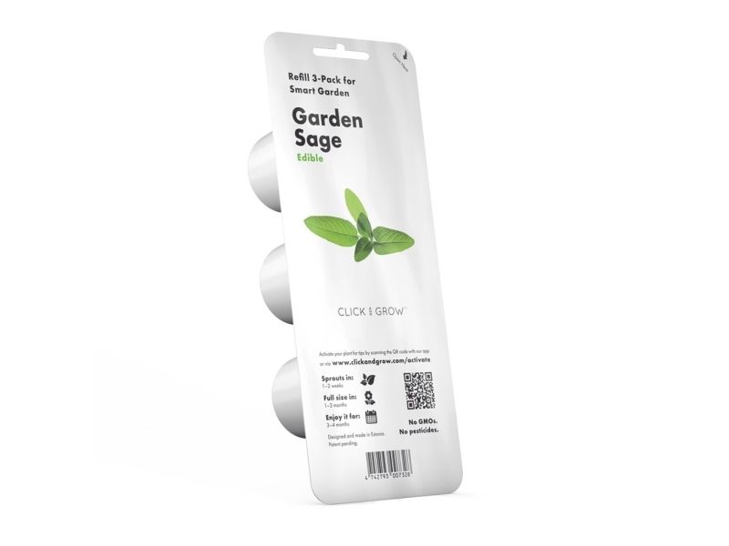 Elevate your culinary experience and support your well-being with the Click and Grow Smart Garden Refill 3-pack - Garden Sage. This sophisticated and practical garden refill lets you grow fresh sage year-round in the comfort of your home.Boosts cognitive function and enhances memoryIt aids in digestion and offers therapeutic benefitsStraightforward to grow with no additional tools requiredIdeal for gastronomes looking to add a gourmet touchGrows perfectly in indoor conditionsBoosts Cognitive Function and Enhances Memory Dating back to the 1500s sage is more than just a culinary herb; it's a companion for your mind. Studies show that including sage in your diet can sharpen your memory and cognitive abilities akin to the stimulating effects of caffeine. Aids in Digestion and Offers Therapeutic Benefits Sage is not only renowned for its rich flavour but also for its digestive properties. It has been traditionally used as a remedy for various digestive disturbances aligning your wellness with your love for gardening. Straightforward to Grow with No Additional Tools Required With the Click and Grow indoor garden cultivating sage becomes effortless. You don't need a green thumb or fancy equipment; insert the pods into your garden and watch the sage thrive in its self-sufficient habitat. Ideal for Gastronomes Looking to Add a Gourmet Touch Transform your dishes with a sprinkle of home-grown sage. Whether fresh or dried the herb infuses a flavour into any recipe making it an indispensable addition for any home chef seeking to elevate their culinary creations. Grows Perfectly in Indoor Conditions Your Smart Garden ensures that sage grows optimally with a preferred temperature range of 18°C to 30°C. Watch as your plant sprouts in 7-14 days and readies for harvesting in 5-12 weeks all year long regardless of the outdoor climate. Package IncludesClick and Grow Smart Garden Refill 3-pack - Garden Sage Product SpecificationsBiological Name: Salvia officinalisEdibility: Edible culinary herbSprouting Time: 7 - 14 daysHarvest Time: 5 - 12 weeksOptimal Growth Temperature: 18°C - 30°C