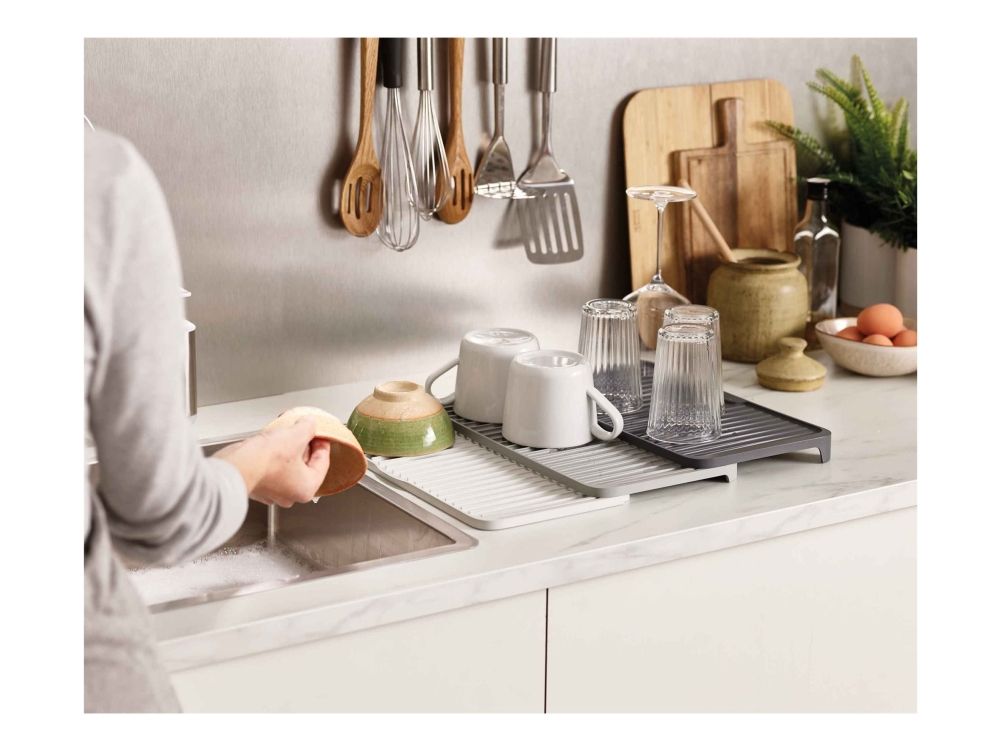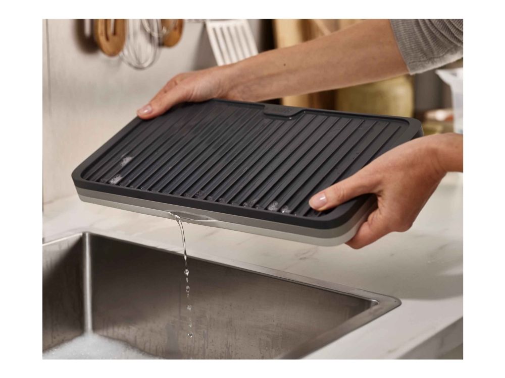 The Joseph Joseph Tier draining board combines functionality and design to enhance kitchen tasks. Measuring 19.9 x 36.2 x 3.2 cm, this draining board offers an integrated spout for easy drainage, simplifying meal prep and cleanup. With the ability to extend its width up to 46 cm, it adapts seamlessly to various dish sizes and drying needs.