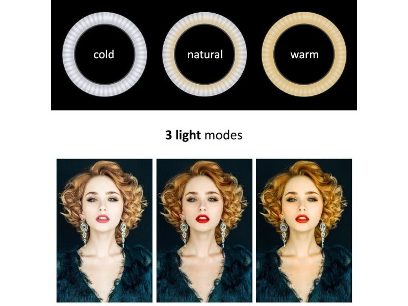 Maclean MCE610 10 12W LED-Ringlicht mit Stativ und Bluetooth-Shutter 3 Farben 10 Helligkeitsstufen 10%–100% stufenlos dimmbar 160 LED Smartphone-Halterung