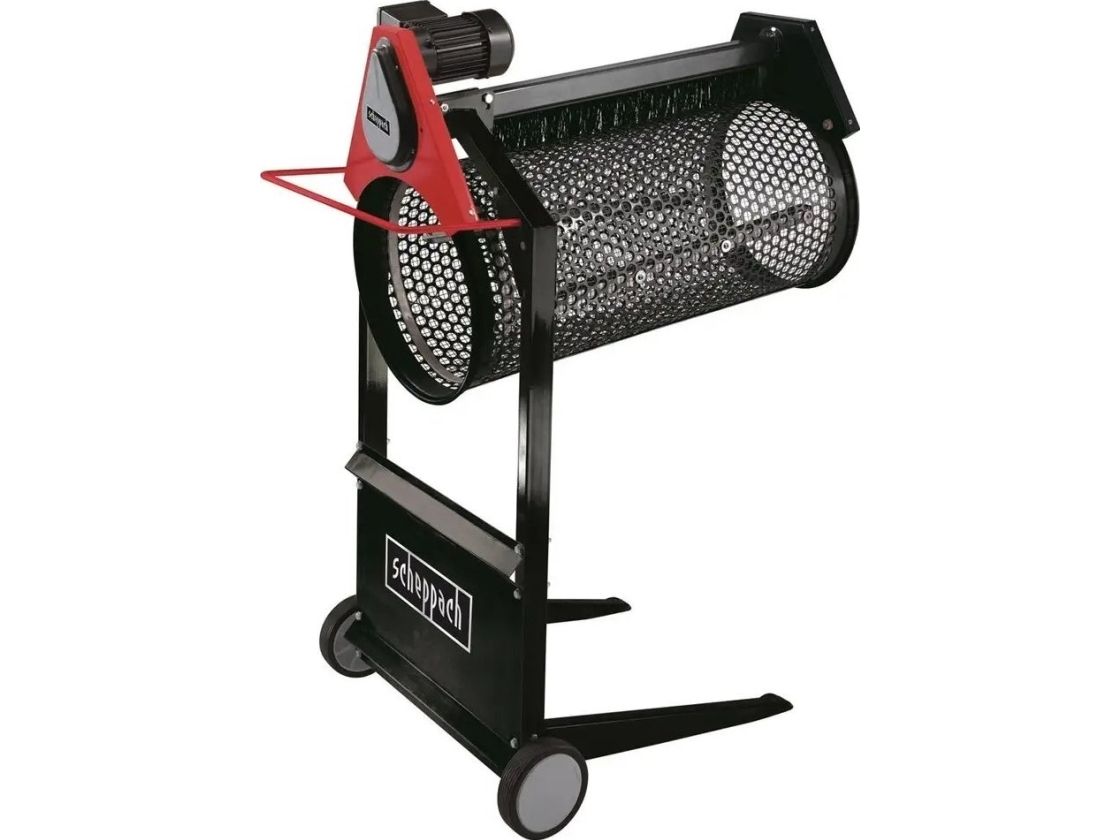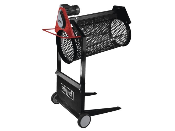 The rs 400 does not let anything pass that you deem too coarse. With this sieve you refine large quantities of soil or compost, or even the children's sandpit. The adjustable angle of the sieve drum as well as the different mesh widths facilitate sieving the utmost variety of materials. The rs 400 finds its way into the most unusual manufacturing industries. Just use your imagination.Scheppach rs 400. Product type: Electric rotary sieve, Product colour: Black, Red, Maximum throughput: 3 m³/h. Power: 360 W, Input frequency: 50 Hz. Drum diameter: 40 cm, Drum length: 90 cm, Width: 700 mm