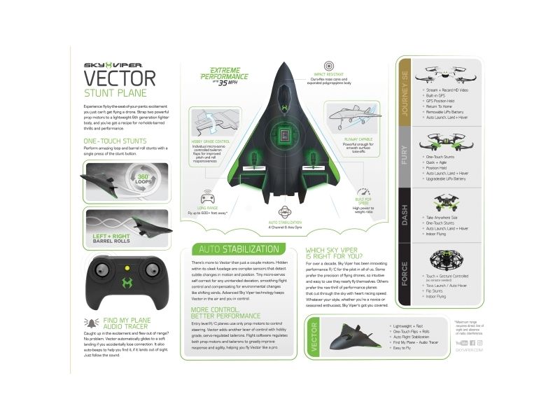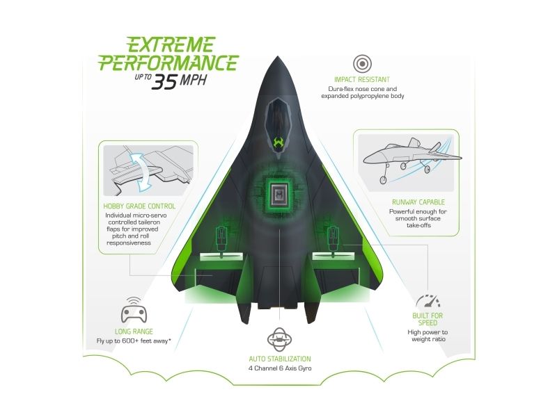 Super-fast RC jet makes awesome stunts by just pressing a button. Virtually indestructible foam body. Easy to control, fly away prevention. Top speed more than 64 km/h! LiPo battery. Controller batteries 3 x AAA not incl. 12+
