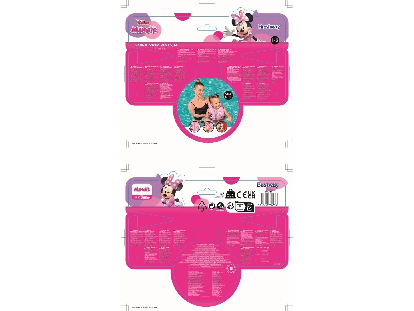 Learning to swim has never been so safe and fun!Bestway Disney Junior Mickey & Friends Minnie Mouse Fabric Kids Swim Vest. Product colour: Pink, Product type: Swim vest, Target audience: Child. Weight: 160 g. Package width: 340 mm, Package depth: 260 mm, Package height: 70 mm. Master (outer) case width: 355 mm, Master (outer) case length: 530 mm, Master (outer) case height: 205 mm