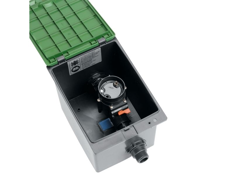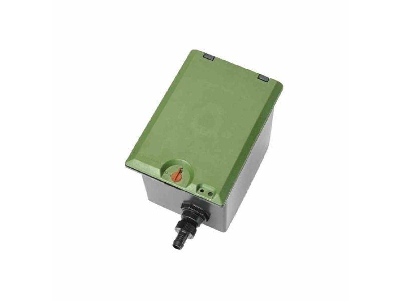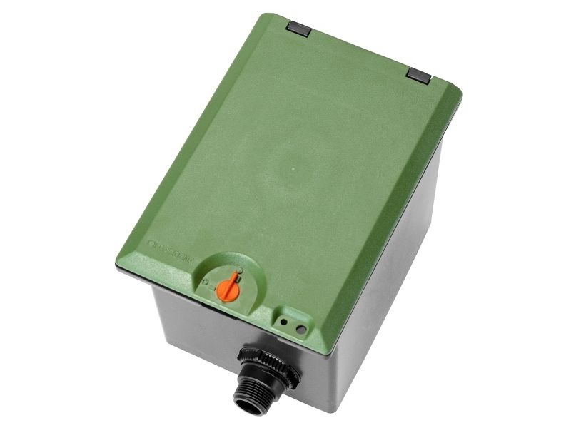 For the installation of a valveIn the GARDENA Valve Box V1 either a 24 V Irrigation Valve or an Irrigation Valve 9 V can be installed below ground. The telescopic screwed connection allows easy valve mounting and removal.