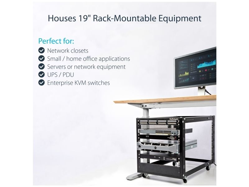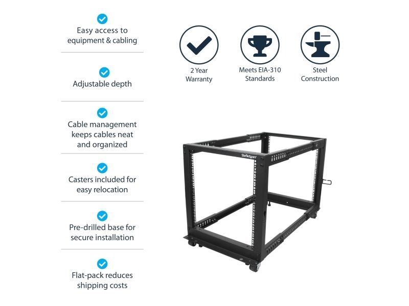 The 4POSTRACK12U 12U Server Rack lets you store your servers, network and telecommunications equipment in a sturdy, adjustable depth open-frame rack.