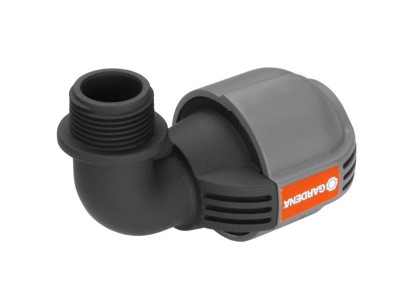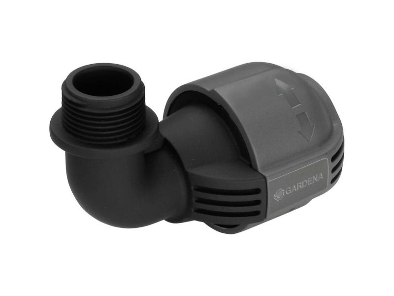 Das GARDENA L-Stück 25 mm x 3/4“-Außengewinde dient – im Rahmen des GARDENA Sprinklersystems – zum Anschluss des Turbinen-Versenkregners T 380 (Art.-Nr. 8205-29), des Versenk-Viereckregners OS 140 (Art.-Nr. 8220) und des Vielflächen-Versenkregners AquaContour automatic (Art.-Nr. 1559-29) am Rohrende. Durch die patentierte „Quick & Easy“-Schnellverbindungstechnik erfolgt die Rohrmontage oder -demontage werkzeuglos durch einfaches Drehen der Verschraubung um 140°. Für den wasserdichten, sicheren Betrieb ist die Gewindeverbindung des L-Stücks selbstdichtend.