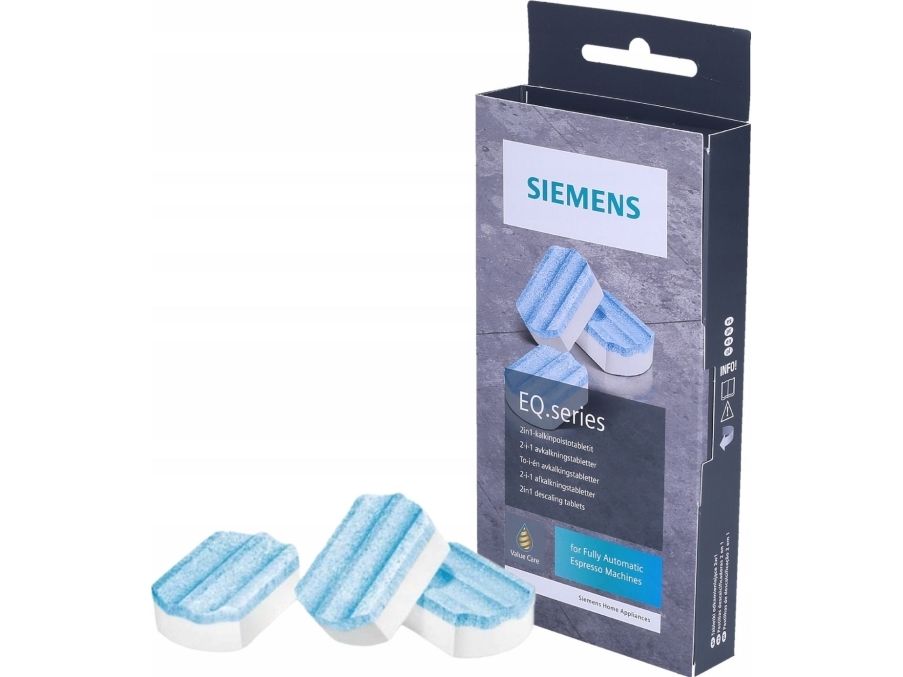 Siemens TZ80002A. Product type: Cleaning tablet. Quantity per pack: 3 pc(s). Signal word: Warning, Health hazard statement(s): H315: Causes skin irritation, H317: May cause an allergic skin reaction, H319: Causes serious eye..., General precautionary statement(s): P102: Keep out of reach of children.
