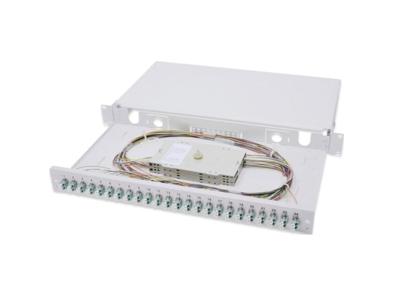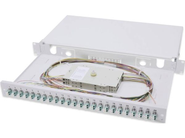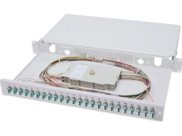 LWL Spleißbox, 1HE, bestückt, 24x LC DX, OM3,inkl. Spleißkass., gefärbte Pigtails, Kupplungen