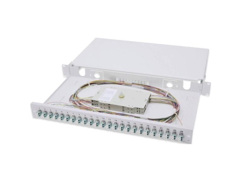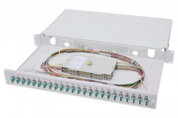 Digitus LWL Spleißbox, 1HE, bestückt, 24x LC DX, OM3, LC, Grau, Stahl, Zirkonia-Keramik, OM3, 1 Stück(e)