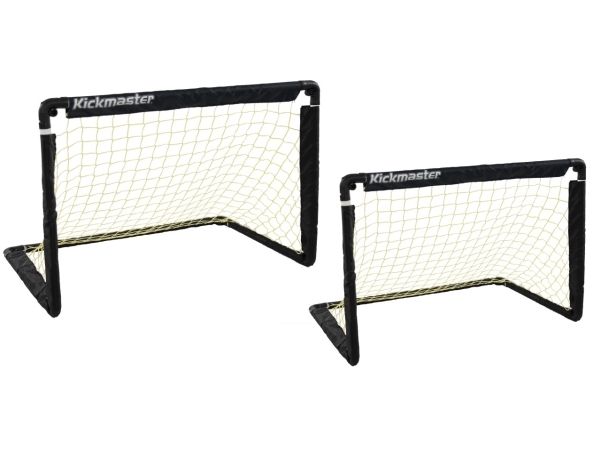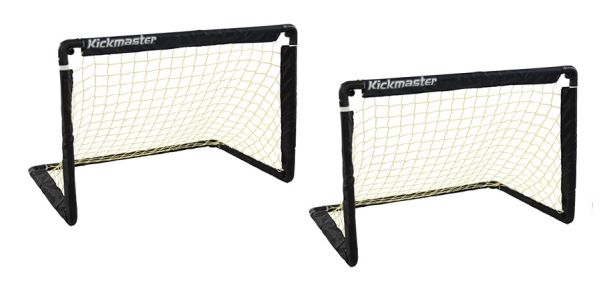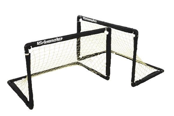 Faltbare Fußballtore, einfach auf- und abzubauen, nehmen im zusammengeklappten Zustand fast keinen Platz weg. Inklusive Heringe für die Montage.