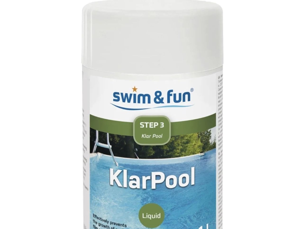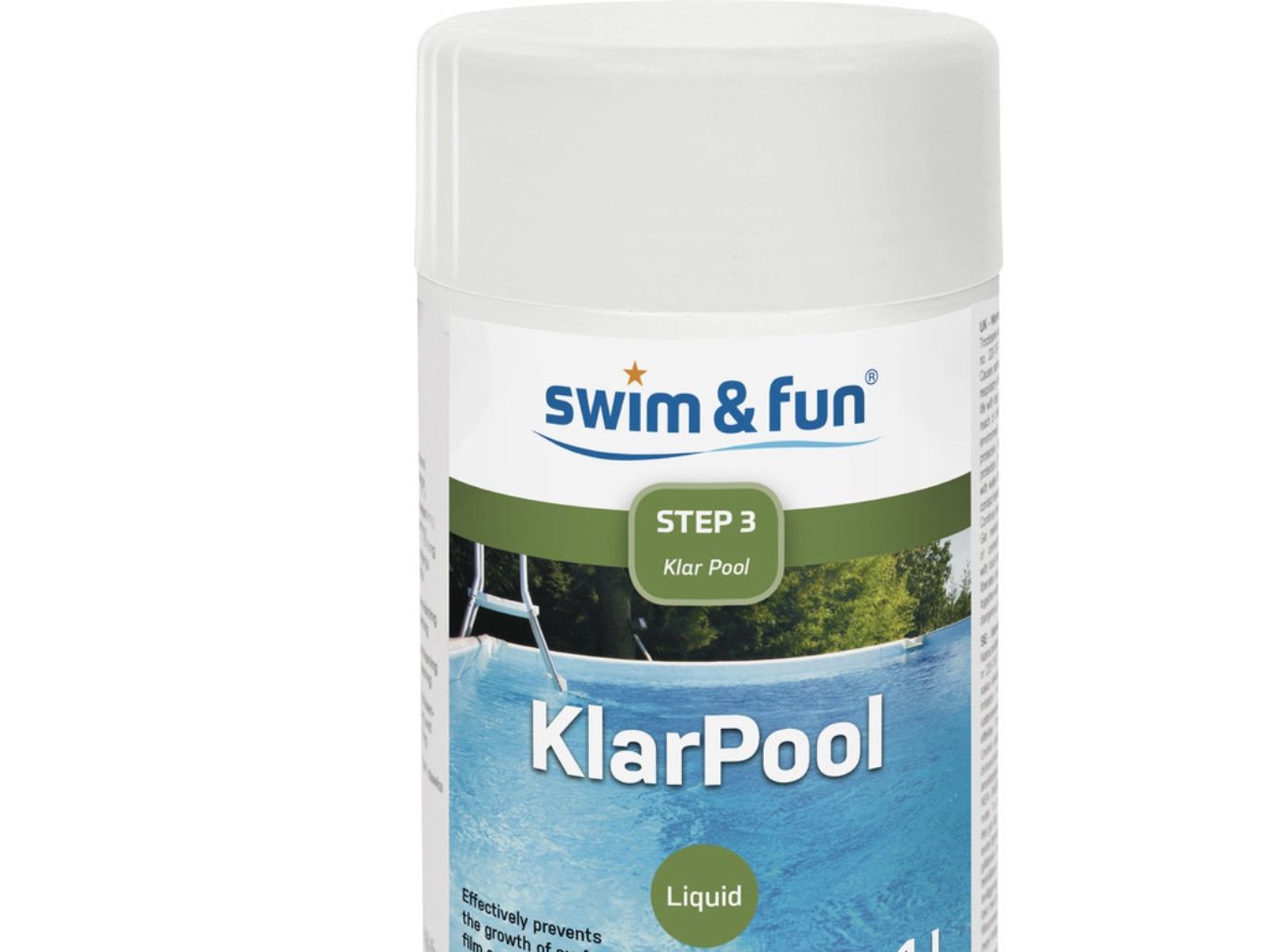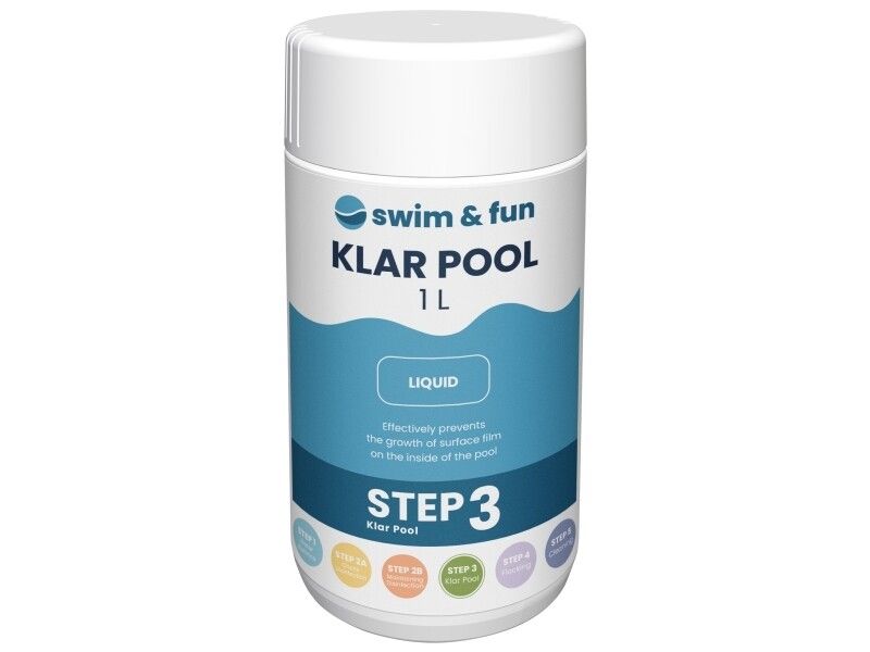 Anfangsdosierung: 1 dl KlarPool je 10 000 l Wasser. Vorbeugende Dosierung: Pro Woche 0,5 dl KlarPool je 10 000 l Wasser. Idealer pH-Wert: 7,0-7,4. In diesem Bereich wirken die Wasserpflegeprodukte von Swim & Fun am besten. KlarPool wird in einem sauberen Kunststoffbehälter mit Wasser vermischt. Diese Lösung wird entlang des Schwimmbeckenrandes in das Badewasser gegeben. Bei hohen Temperaturen, Unwetter oder häufiger Nutzung des Schwimmbeckens wird eine höhere Dosierung empfohlen. Niemals mit anderen Chemikalien mischen! Das Produkt wird in der Originalverpackung stehend, trocken, frostfrei und geschützt vor direkter Sonneneinstrahlung aufbewahrt. Von Kindern fernhalten. Bei der Verwendung von Bioziden sind stets die Sicherheitshinweise auf Etikett und Datenblatt zu beachten. Verwenden Sie den Deckel als Messbecher: