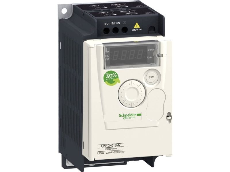 Schneider Electric ATV12H037M2, Schwarz, Weiß, 200-240 V, 50-60 Hz, 72 mm, 121,2 mm, 143 mm