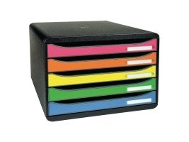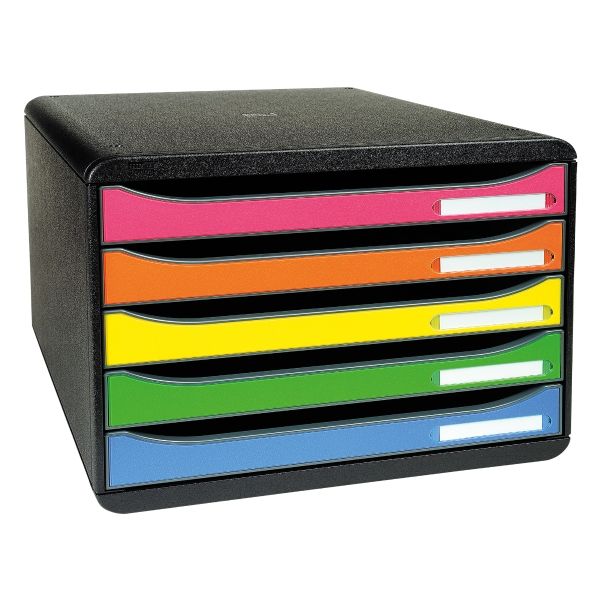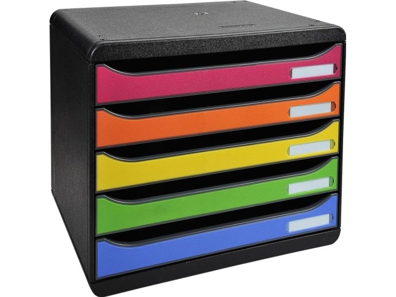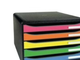 Ordnungsund Ablagebox mit 5 offenen Laden 43mm hoch für A4+ Formate. Quer Format (landscape) : passt in untiefe Schräncke oder Büromöbeln (Aussentiefe = 27cm). Ideal für quer Dokumente wie Tabellen. Griffgünstige Ausnehmung durch die das Ablagegut ohne Öffnen der Lade eingeschoben werden kann. Federleichte Ladenführung mit einzigartigem Stopp-Mechanismus Etikettenhalter inklusive Etikettenset Montag Sonntag im Lieferumfang.