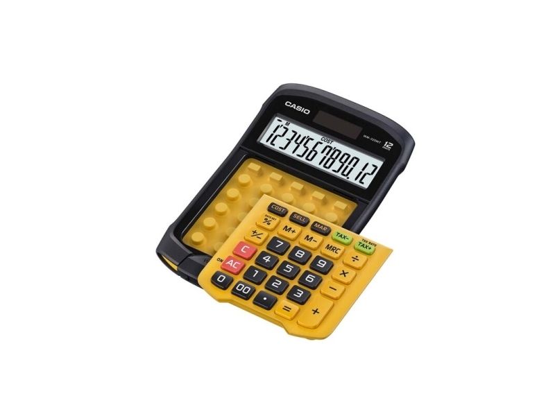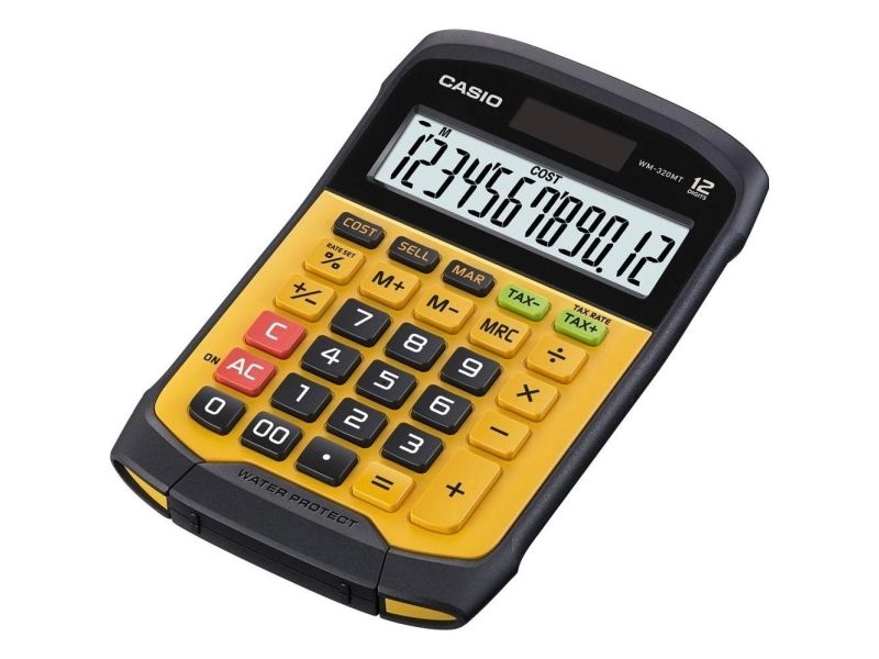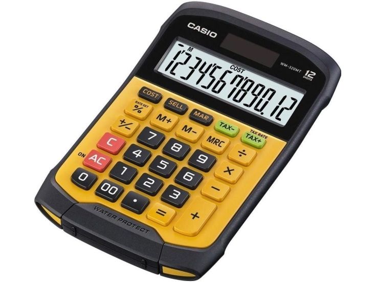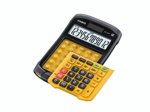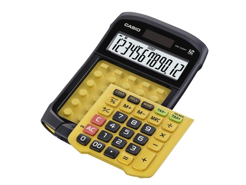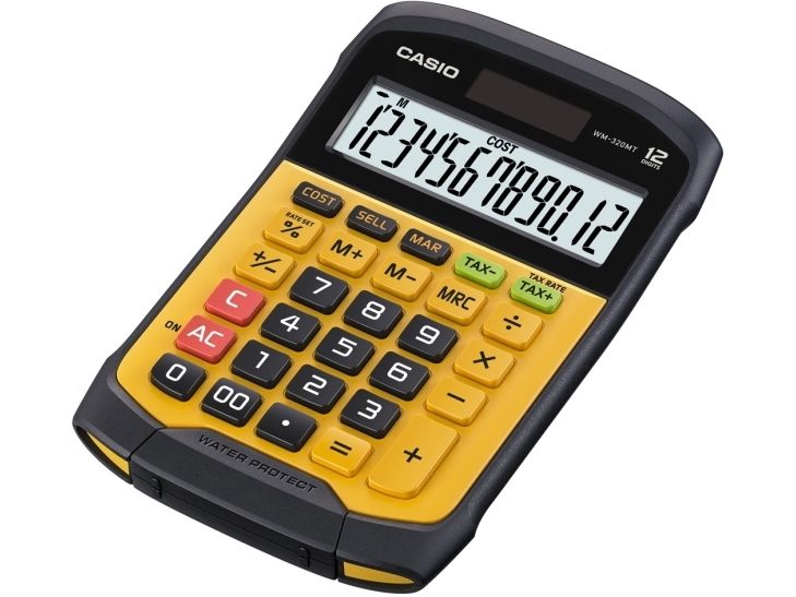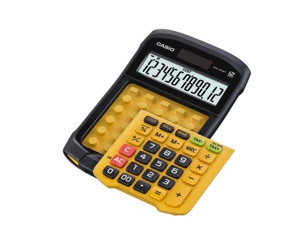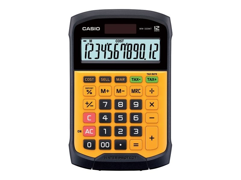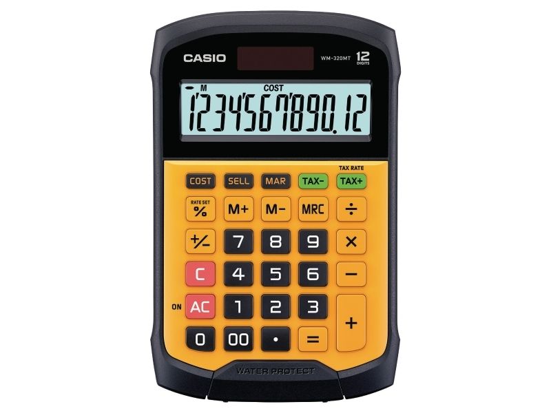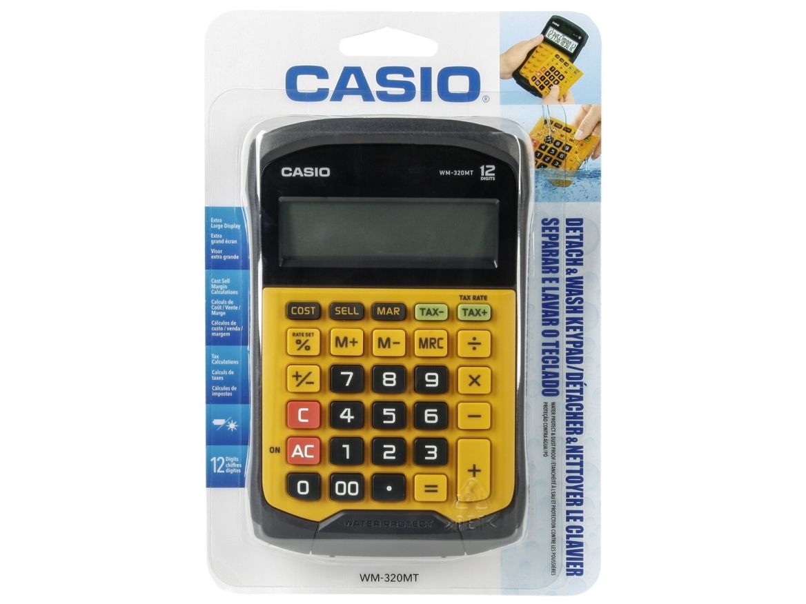 Casio WM-320MT im revolutionären neuen Design mit abnehmbarer, abwaschbarer Tastatur. Dieser wasser- und staubdichte Taschenrechner kann auch dann verwendet werden, wenn er Flüssigkeiten oder Schmutz ausgesetzt ist. Gut geeignet für Märkte, Straßenstände oder z.B. Lebensmittelgeschäfte. Wasser- und staubdicht nach Schutzart IP54. Benötigt 1 CR2032 Batterie. Abmessungen: HxBxL 3,3 x 10,9 x 16,9cm