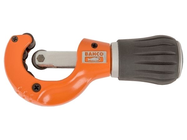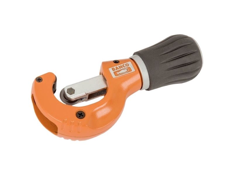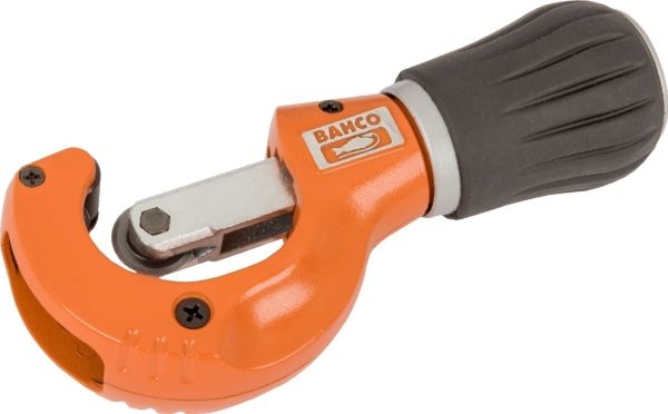 Rohrschneider für Aluminium, Stahl, Kupfer und Zink. Großes Einstellrad für schnellen Wechsel von einer Größe zur anderen. Teleskopmechanismus für guten Kontakt mit dem Werkstück. Ersatzschneidrad im Knopf. Einfacher und schneller Schneidradwechsel.