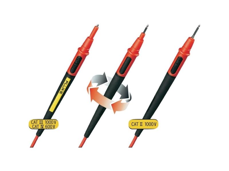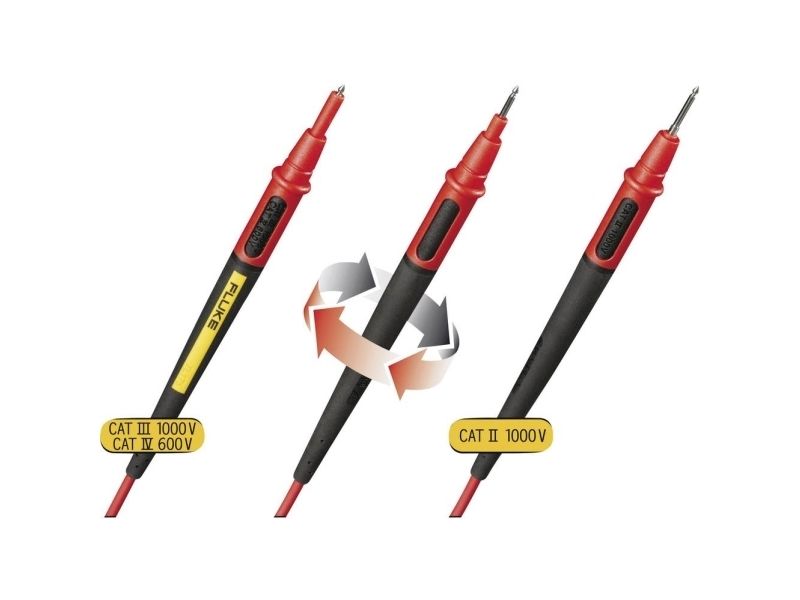 The Fluke TL175 TwistGuard™ Test Leads offer adjustable length test tips for use in different measurement environments. The TwistGuard™ adjustable tips enhance safety and versatility length. The WearGuard™ indicator shows damage to leads and provides heavy duty strain relief to withstand over 30,000 bends.