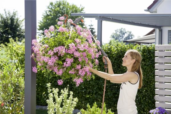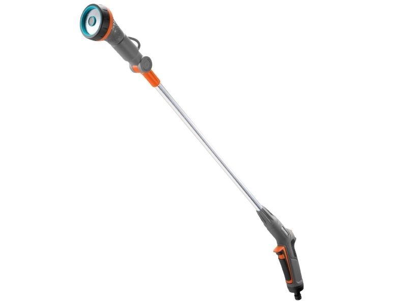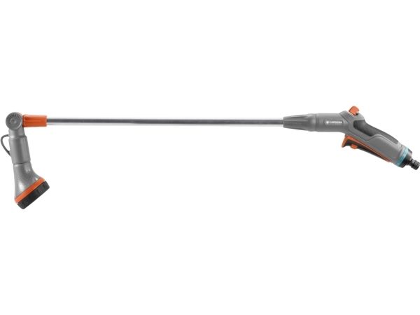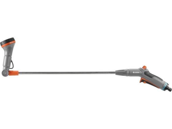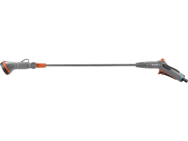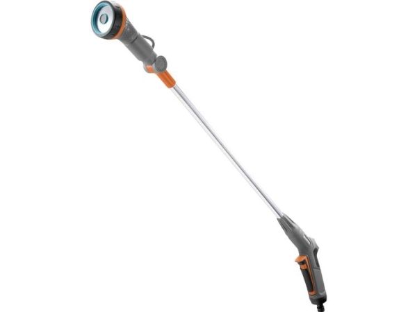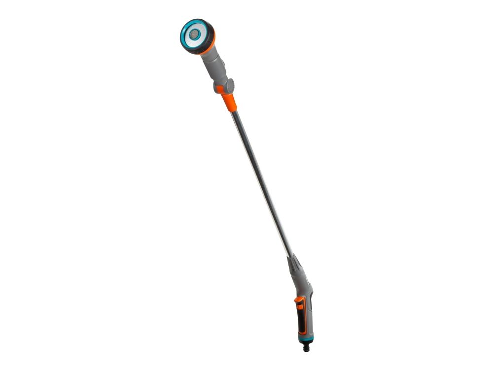 Mit dem Comfort Blumenampel-Gießstab gießen Sie sowohl Blumenampeln als auch weiter entfernte Pflanzen dank dem schwenkbaren Brausekopf. Hierbei können Sie den Wasserdurchfluss stufenlos regulieren. Wenn Sie dauerhaft bewässern möchten, kann die Auslösetaste arretiert werden. Die integrierte Frostschutztechnologie macht den Gießstab besonders langlebig. Länge 90 cm.
