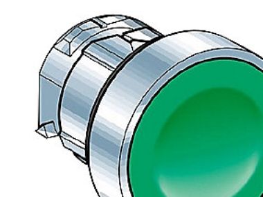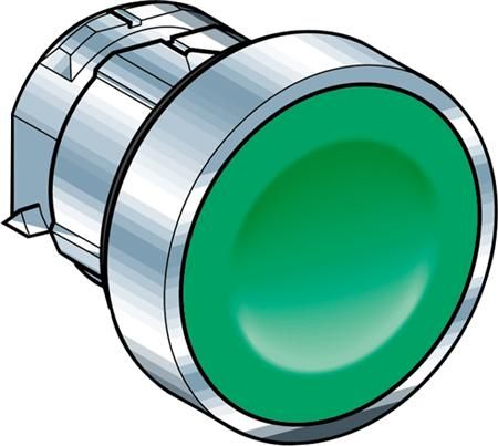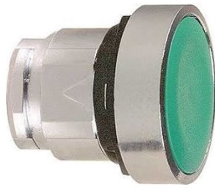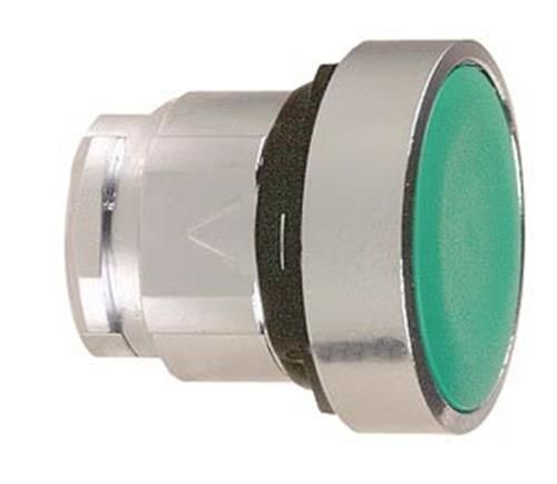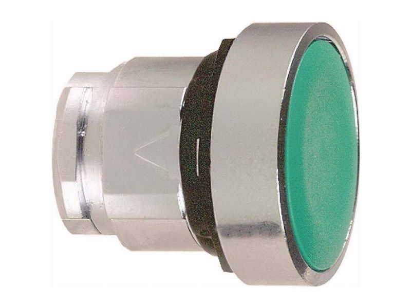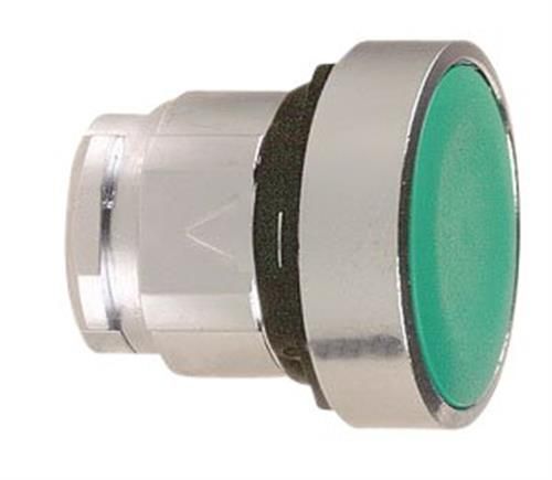 Green flush pushbutton head Ø22 spring return unmarked.