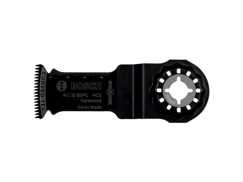 HCS dyksavklinge AIZ 32 BSPC Hard Wood, 50 x 32 mm, pakke med 5 stk. Dyksavklingen Starlock AIZ 32 SPC giver rene snit i hårdt træ. Dens tredimensionale japanske tandanordning består af skarpe tænder, ideal, der er velegnet til revnefri savning. Denne tandanordning minimerer varmeudviklingen og giver meget rene snit uden aftapning eller varmeudstråler. Den robuste Starlock-påtagelses-system reducerer lateral svingning og muliggør præcise snit via direkte kraftoverførsel. Dette produkt anvendes til dyksavning i hårdt træ, savning af huller i møbeldele samt savning af træpaneler. Produktet bruges med alle elværktøjer af typen Starlock, Starlock Plus og Starlock Max samt alle gængse multifunktionsværktøjer. Den afrundede bladspids (Curved-Tec) giver præcis og glat dyksavning. Starlock-optagelsessystemet giver mulighed for en hurtig udskiftning af blade uden at berøre bladene på tre sekunder. Optagesystemet muliggør maksimal kraftoverførsel mellem maskine og tilbehør med sin tredimensional