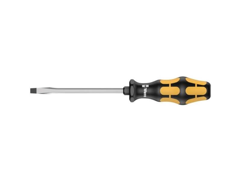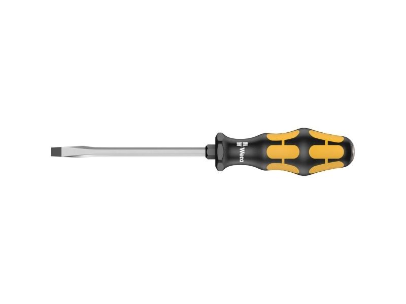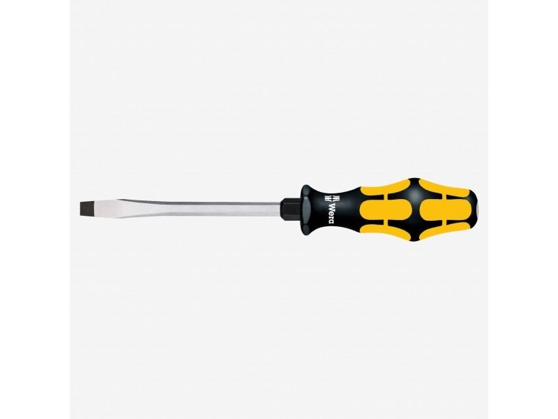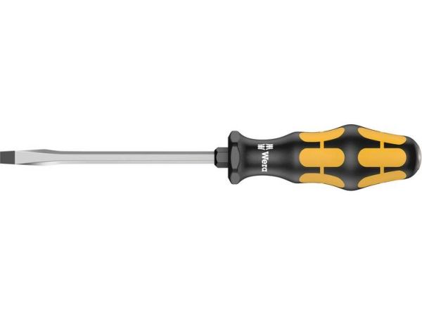 Wera Schraubmeißel zum Schrauben, Meißeln, Stemmen und Lösen festsitzender Schrauben. Mit mehrkomponentigem Kraftform Griff für schnelles und schonendes Arbeiten. Kraftform Plus: Harte Griffzonen für hohe Arbeitsgeschwindigkeit, während weiche Griffzonen hohe Drehmomentübertragung garantieren. Mit durchgehender Sechskantklinge aus hochwertigem Bit-Material, dadurch verlustfreie Kraftübertragung auch bei Hammerschlägen. Zähhart vergütetes Material gegen Absplittern oder Bruch der Klinge. Mit integrierter Schlagkappe zur Erhöhung der Lebensdauer und Reduzierung der Splittergefahr. Über die integrierte Sechskantschlüsselhilfe können mit Maul- oder Ringschlüsseln höhere Drehmomente übertragen werden. Die Wera Black Point Spitze und ein aufwändiges Härteverfahren garantieren lange Nutzbarkeit der Spitze, erhöhten Korrosionsschutz und exakte Passgenauigkeit. Mit Sechskantabrollschutz gegen lästiges Wegrollen am Arbeitsplatz. Mit Griffkennzeichnung zum leichteren Finden und Sortieren des Werkzeugs.