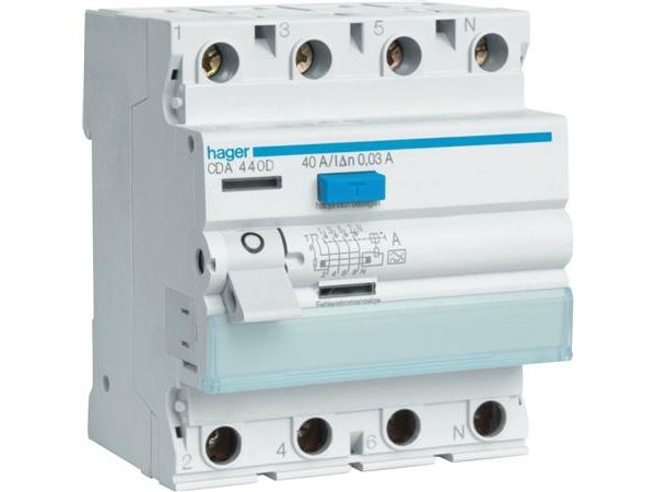The Hager CDA440K is a critical component for any electrical installation, designed to enhance safety and reliability. As a residual current device, it plays a pivotal role in protecting against the risks of electrical faults by swiftly disconnecting the power to prevent accidents such as electrical shocks or fires. Its external form factor makes it accessible for maintenance and simplifies the installation process. With the capability to handle up to 40 A of electric current and featuring a 4-pole design, the CDA440K is suited for a wide array of power management tasks, ensuring your electrical systems operate smoothly and safely.