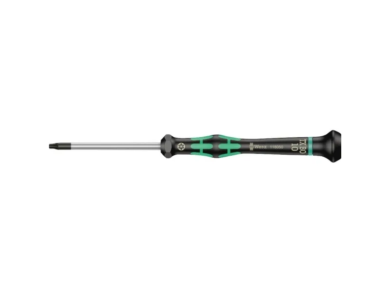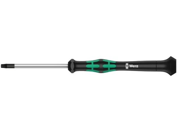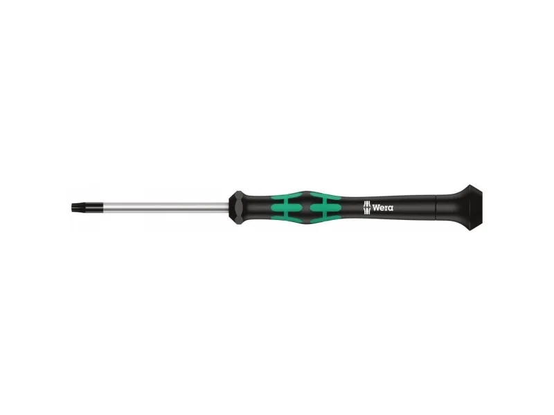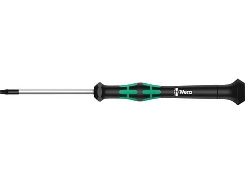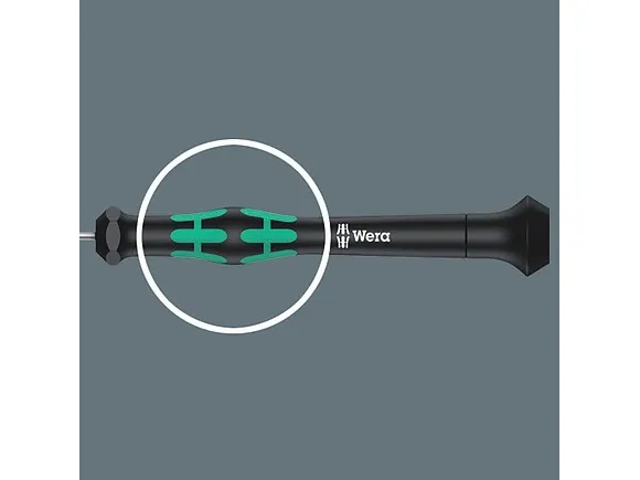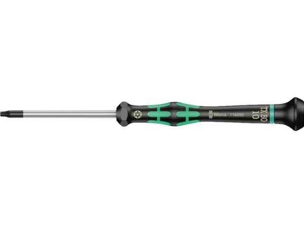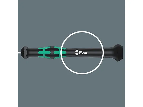 Hochwertiger Wera Micro Schraubendreher für feinmechanische Verschraubungen. Für TORX-Sicherheitsverschraubungen: TORX® BO-Schrauben besitzen in ihrem Antriebsprofil einen vorstehenden Zapfen. Damit wird unerlaubtes Lösen verhindert, denn mit "normalen" TORX®-Werkzeugen können diese Schrauben nicht betätigt werden. Nur spezielle TORX® BO Werkzeuge weisen eine Bohrung auf, in die der Zapfen aufgenommen wird. Durch Abstützen der Hand auf der Drehkappe und durch die Schnelldrehzone unterhalb der Drehkappe ist blitzschnelles Zwirbeln möglich. Zeitintensives Umgreifen entfällt. Kraftzone mit integrierten Weichzonen sorgt für die Übertragung hoher Löse- und Anzugsmomente. Präzisionszone für den richtigen Drehwinkel bei Justierarbeiten. Die Wera Black Point-Spitze bietet Passgenauigkeit und optimierten Korrosionsschutz.