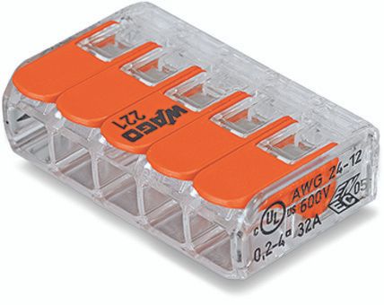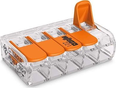 COMPACT-Verbindungsklemme für alle Leiterarten; 5-Leiter-Klemme; mit Betätigungshebeln; max. Umgebungstemperatur 85°C