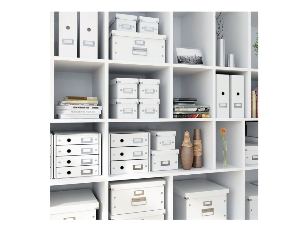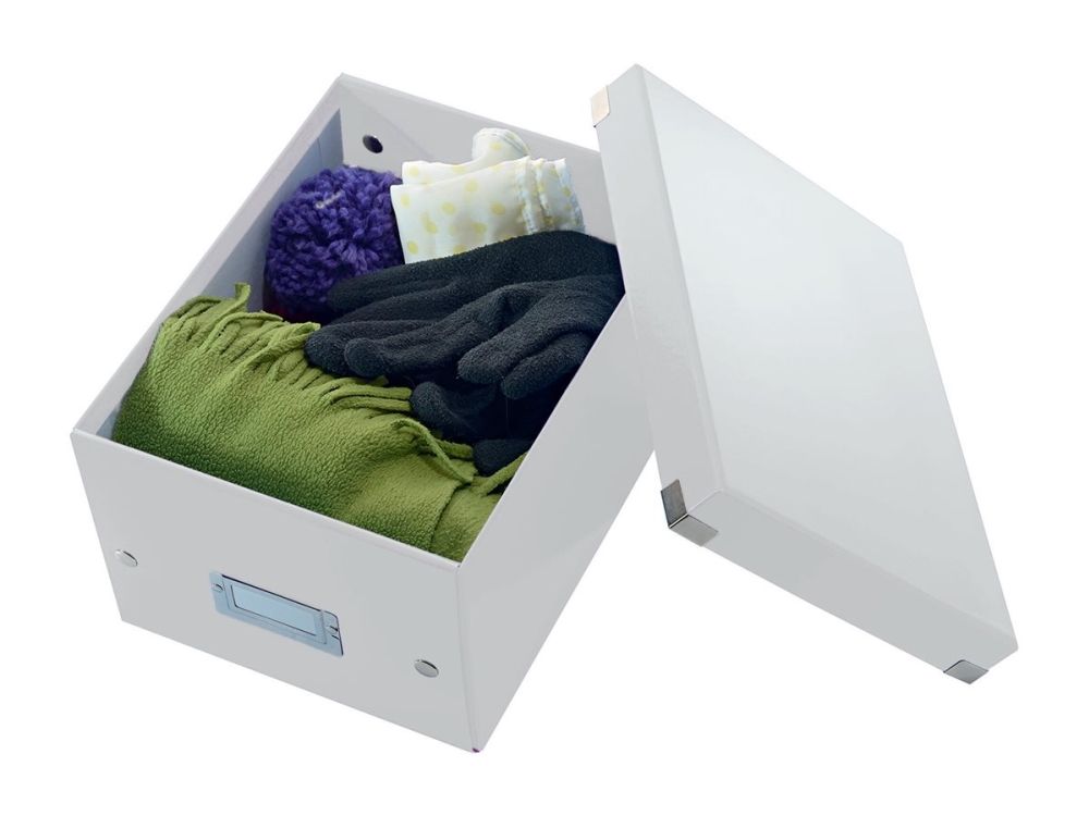 Kleine Aufbewahrungs- und Transportbox für Unterlagen in Format A5 mit laminierter Oberfläche und metallverstärkten Ecken für einen dauerhaften Schutz. Leichtes Aufbauen dank praktischer Druckknöpfe und ebenso schnelles Zusammenklappen zum platzsparenden Verstauen von Unterlagen und anderem Krimskrams.