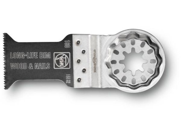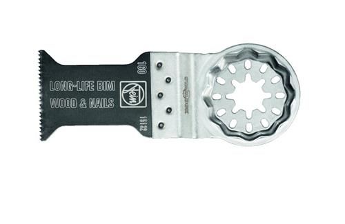 Bimetal with set wood teeth for all wood, plasterboard and plastic materials. Outstanding tool life, high cutting quality and speed. Extremely robust, not affected by nails (up to diameter of approx. 4 mm) in wood, masonry etc. Medium width, with waist for optimum cutting speed and good swarf removal.
