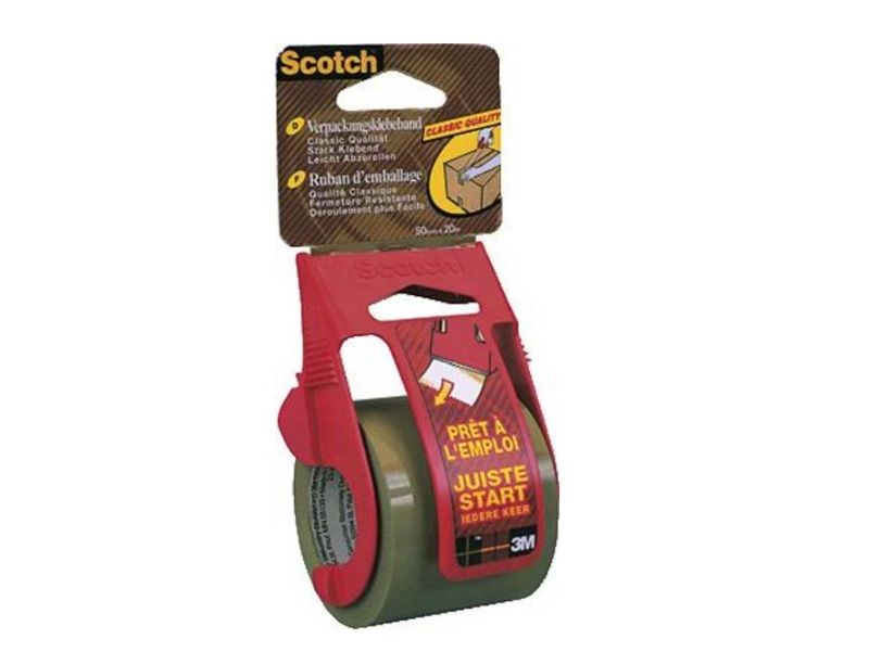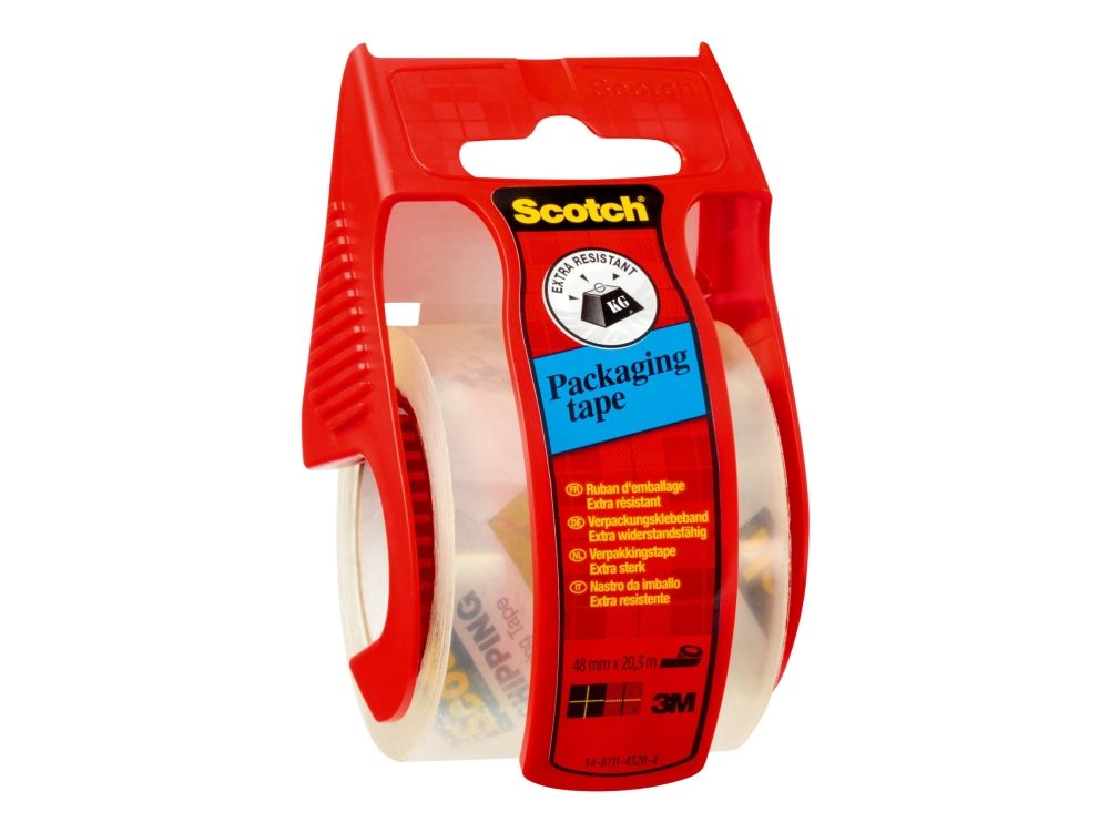 Scotch packaging tape is super strong for your heaviest packages. The dispenser ensures the tape will not fall back on the roll and the tape has an easy unwind. Ideal for moving, mailing, and package sealing.
