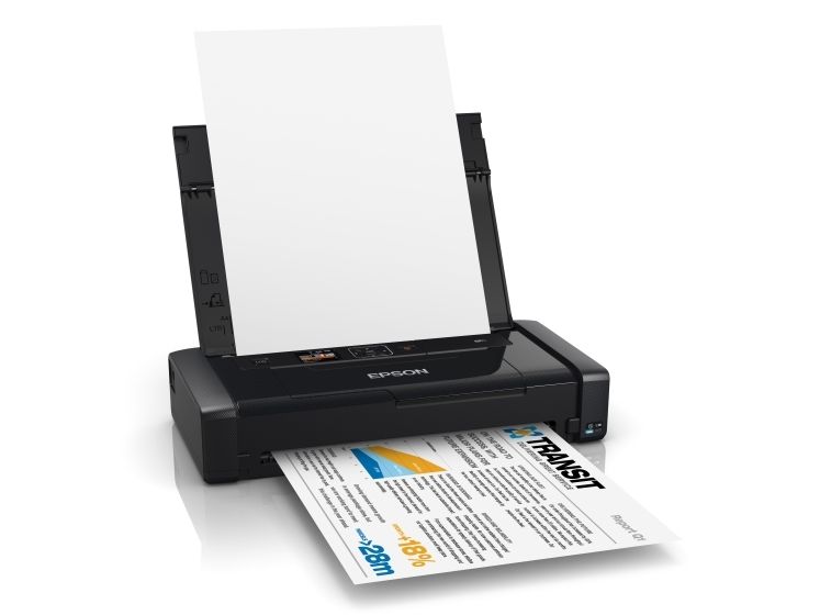 Print anywhere with Epson's smallest and lightest wireless A4 inkjet printer that can be charged on the go via USB.