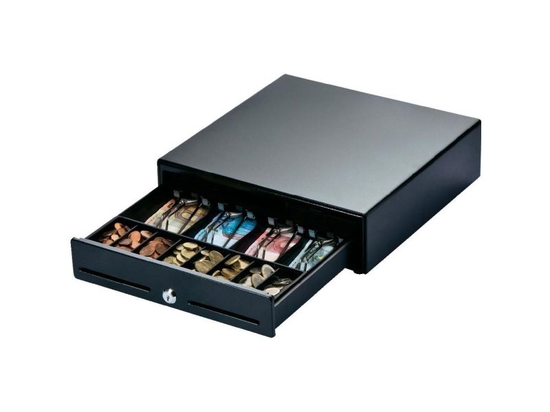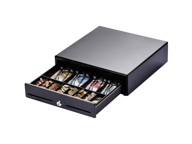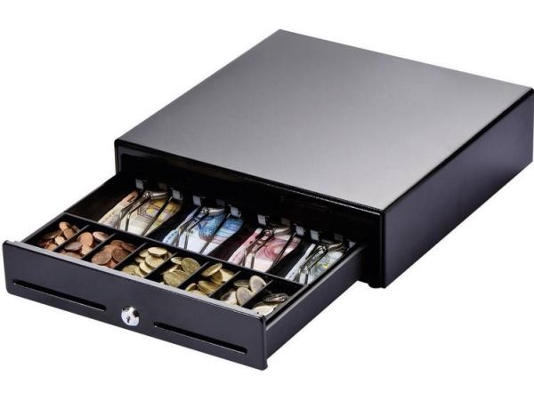 Mini-Kassenschublade K-2Standardanschluss für Gelddrucker 24VIdeel für Kassenbereiche mit geringem Platzbedarf. Mit nur 330 x 330 x 101 mm ist sie unauffällig und klein an jeder Kassenlinie. Die vier schrägen Banknotenfächer sind für Euro optimiert, können aber auch problemlos eine Vielzahl anderer Währungen aufnehmen. Die acht Münzfächer sind flexibel unterteilbar und lassen sich so leicht an jeden Bedarf anpassen.