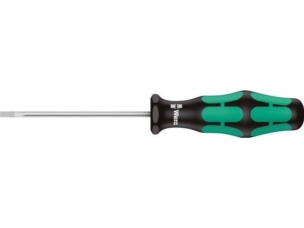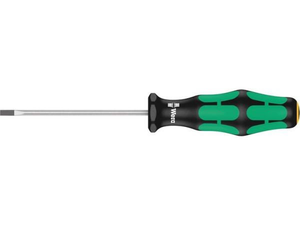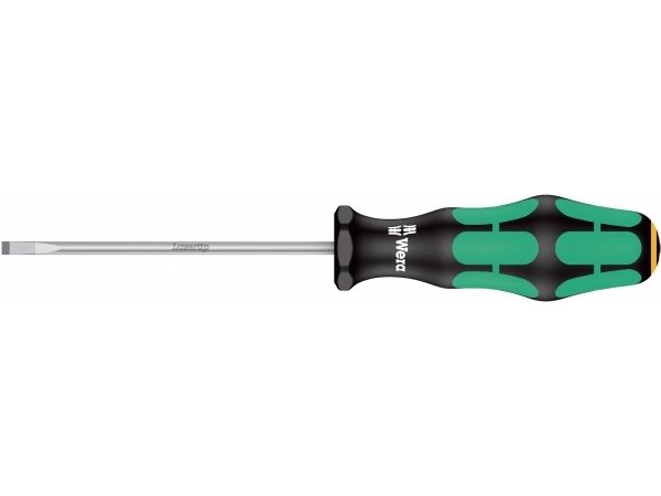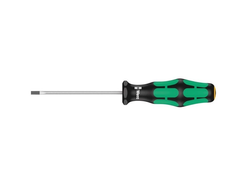 Hochwertiger Kraftform Plus Schraubendreher mit Elektrikerklinge. Mehrkomponentiger Kraftform Plus Griff für angenehm ergonomisches Arbeiten, bei dem Blasen und Schwielen vermieden werden. Harte Griffzonen für hohe Arbeitsgeschwindigkeit, während weiche Griffzonen hohe Drehmomentübertragung garantieren. „Take it easy“ Werkzeugfinder mit Farbkennzeichnung nach Profilen und Größenstempelung – zum einfachen und schnellen Finden des benötigten Werkzeugs. Der Sechskantabrollschutz verhindert lästiges Wegrollen am Arbeitsplatz.
