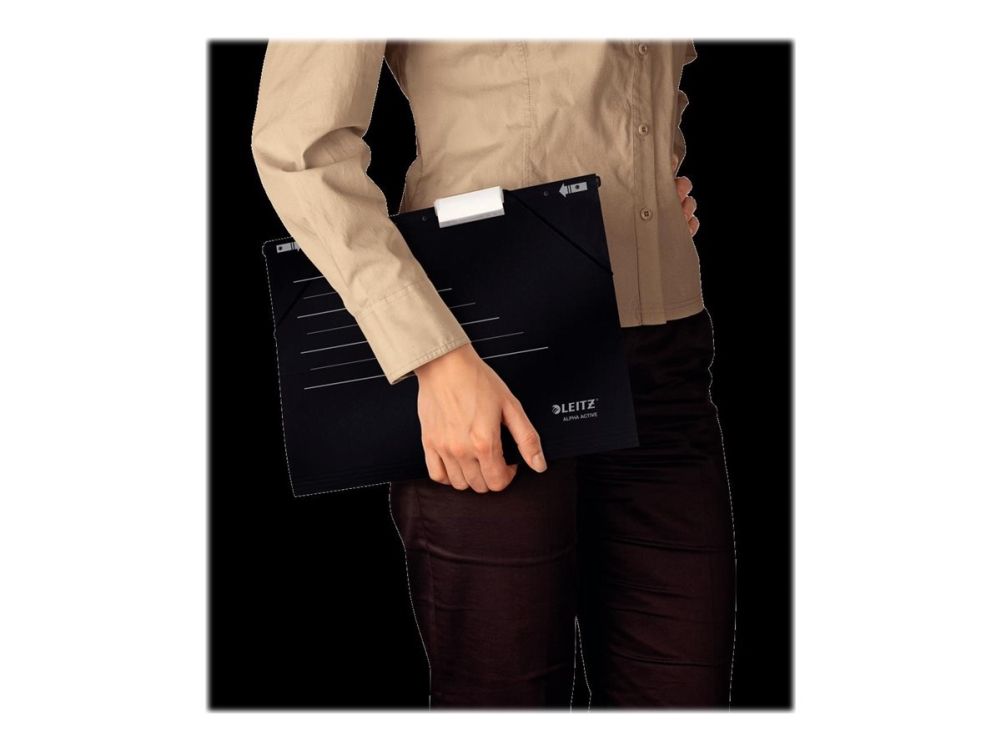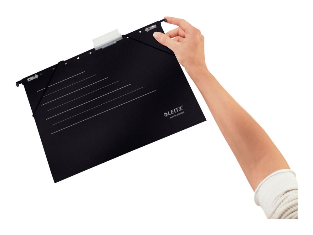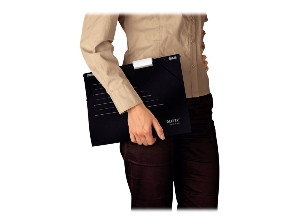 Alpha Active vereint die bewährte Leitz Qualität der Hängeregistratur mit den innovativen Eigenschaften für mobilen Einsatz. Puristisches Design in zwei zeitlosen Farben. Für gelochte Unterlagen.