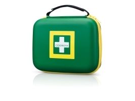 Dieser Verbandskasten ist ein Erste-Hilfe-Kasten aus strapazierfähigem, gummiartigem Material mit einer matten Oberfläche, die Staub, Feuchtigkeit und Schmutz abhalten kann. Die Ausrüstung wird hygienisch sauber gehalten und ist immer einsatzbereit. Die Produkte sind in transparenten Kunststofftaschen verpackt, die einen klaren Überblick bieten und es leicht machen, das richtige Produkt zu finden, wenn jede Sekunde zählt. Alle Produkte sind mit klaren, selbsterklärenden Hinweisen gekennzeichnet. Die Signalfarben Grün und Gelb machen den Koffer schon von weitem sichtbar. Ein praktischer Griff mit verstellbarem Klettband erleichtert das Befestigen oder Mitführen des Koffers.
