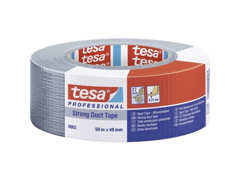 tesa® 4662 is a strong duct tape. It consists of a 27 mesh woven PET/cotton fabric backing coated with a natural rubber adhesive. tesa® duct 4662 is a self adhesive tape with typical duct features for a wide range of applications.