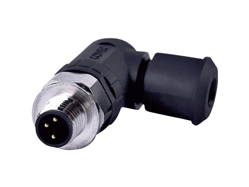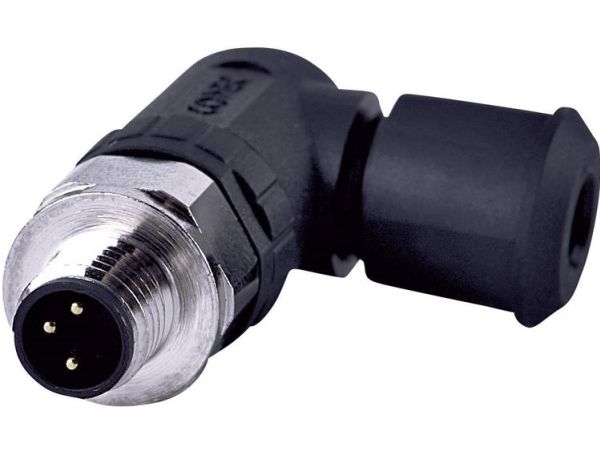 - Connectors field attachable - Male connector angled - Screw Termination - M8x1 - 3-pos. - Screwable - Unshielded - Zinc die cast