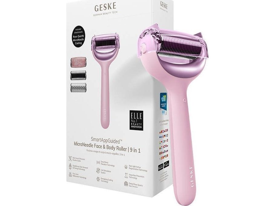Enjoy professional skin care in the comfort of your home and forget about expensive treatments! Get a refreshed, healthy look with the 9in1 face and body micro-needle mesotherapy roller! Equipped with 3 heads - micro-needle, cooling and quartz - it stands out for its versatility and is suitable for all skin types. The Roller is a SmartAppGuided device that works with the dedicated GESKE German Beauty Tech app. It will help you quickly get the results you dream of - based on the appearance of your skin, it suggests skin care treatments tailored to your needs to improve your skin's appearance for a youthful glow every day! Effectiveness confirmed by ELLE magazine!