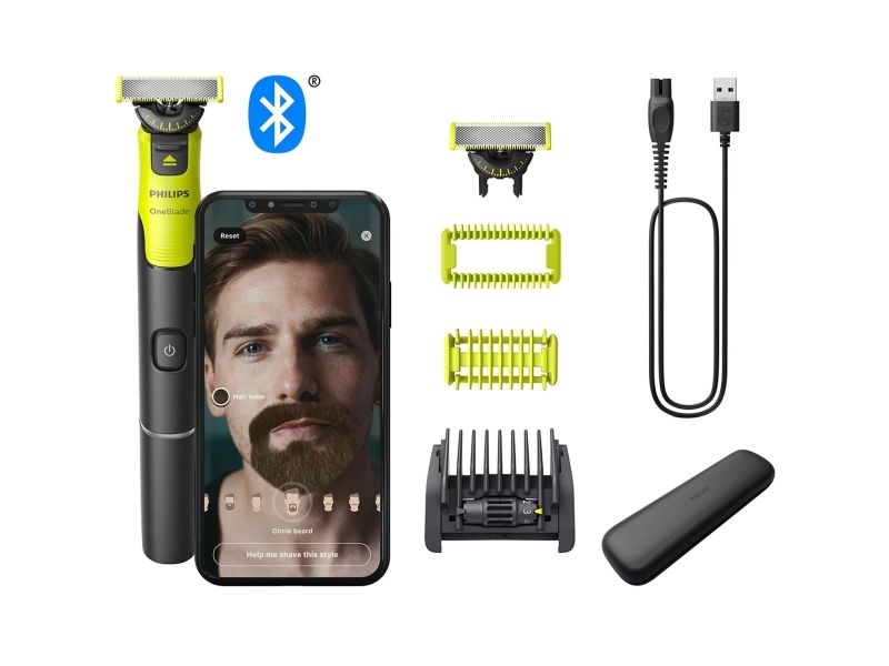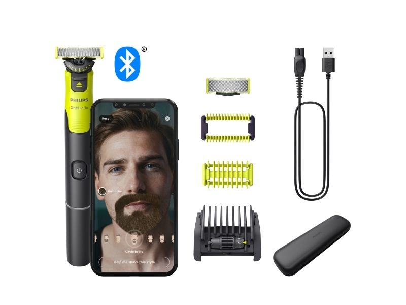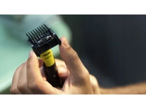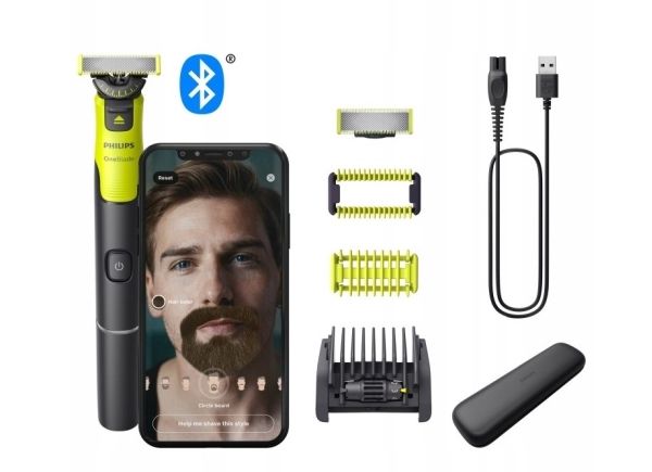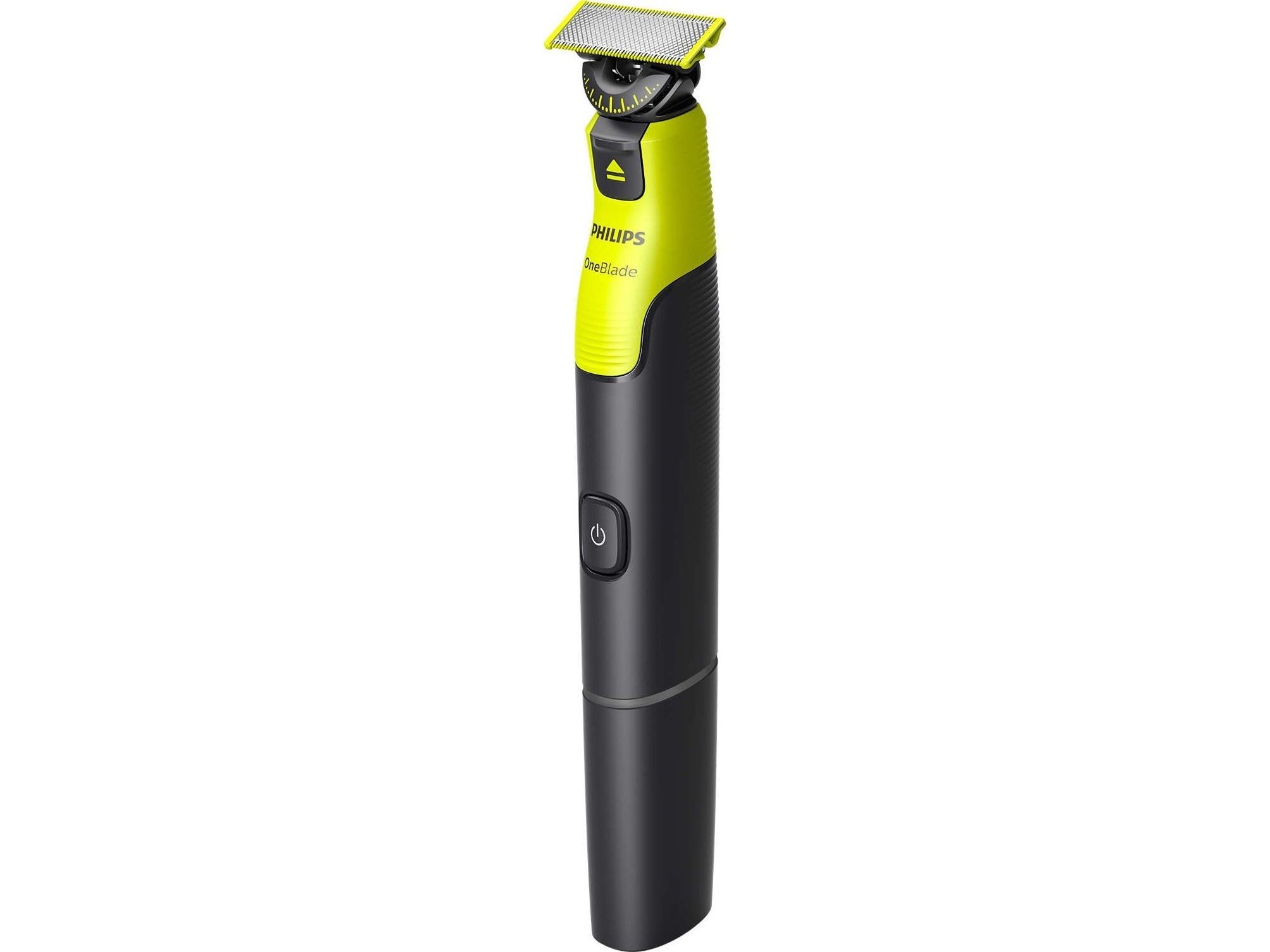 Trim, edge and shave any length of hair effortlessly Designed to cut hair, not skin The new OneBlade 360 trims, edges and shaves any length of hair more effortlessly. Easily shave & trim even the most difficult to reach areas with fewer* passes. Forget about using multiple steps and tools. OneBlade does it all.Philips OneBlade 360 with Connectivity QP4631/65 Face and Body. Shaver system: Foil shaver, Product colour: Grey, Lime, Shaving system technologies: Contour-following technology, Dual protection system, 360 Blade. Power source: Battery, Battery technology: Lithium-Ion (Li-Ion), Battery type: Built-in battery. Width: 318 mm, Depth: 32 mm, Height: 230 mm. Package weight: 394.69 g, Package type: Box. Quantity per pack: 1 pc(s), Attachment combs: Beard, Body