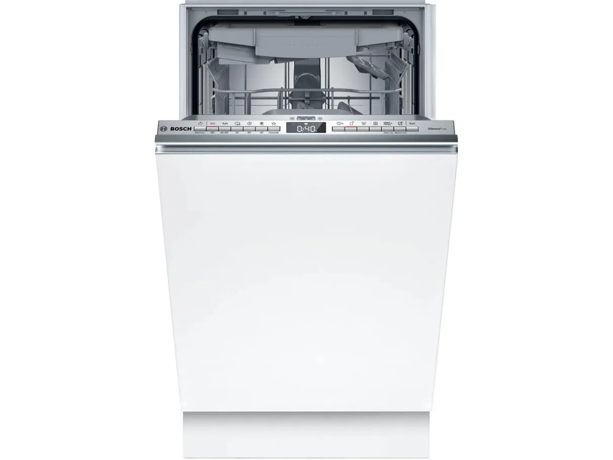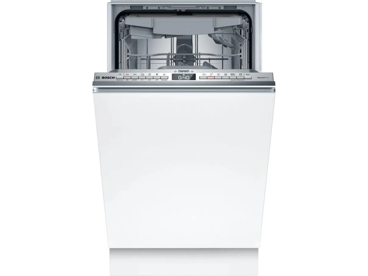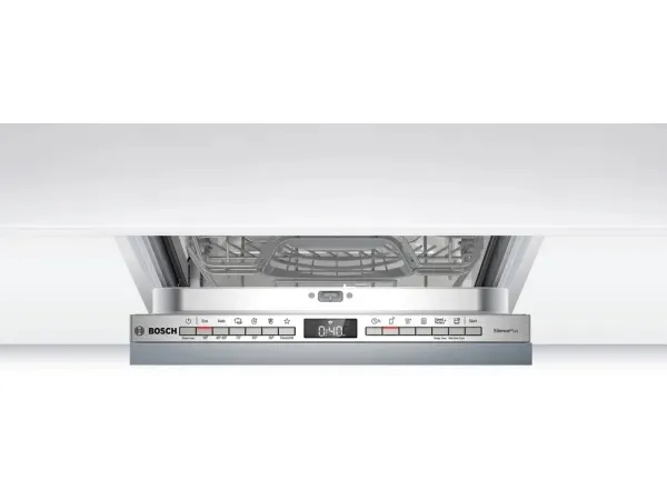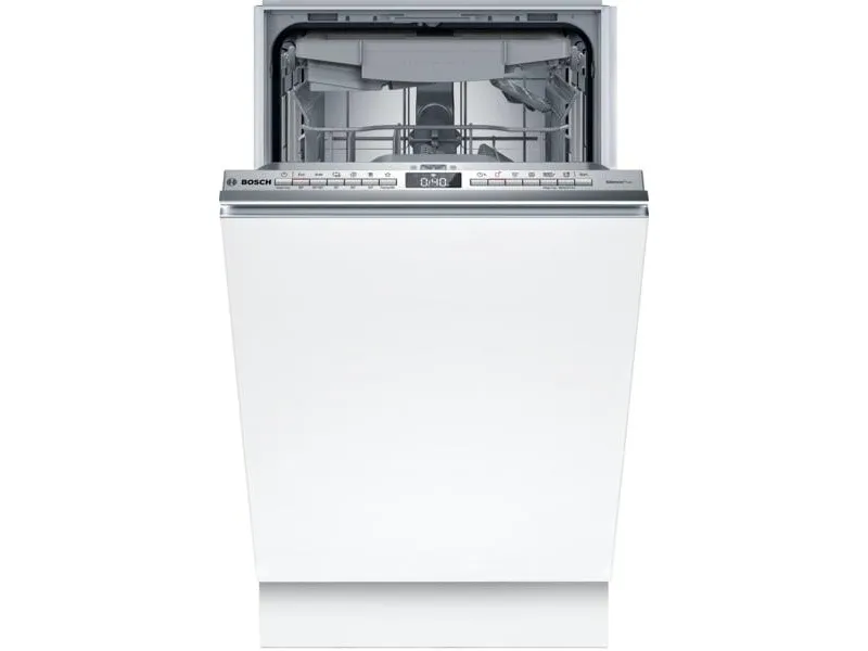 Bosch Serie 4 SPV4HMX10E. Appliance placement: Fully built-in, Product size: Compact, Control type: Buttons. Number of place settings: 10 place settings, Noise emission class: B, Noise level: 44 dB. Feet adjustment: 6 cm, Apps supported: Home Connect. Energy efficiency class: E, Water consumption per cycle: 9.5 L, Energy consumption per 100 cycles: 76 kWh. Width: 448 mm, Depth: 550 mm, Height: 815 mm