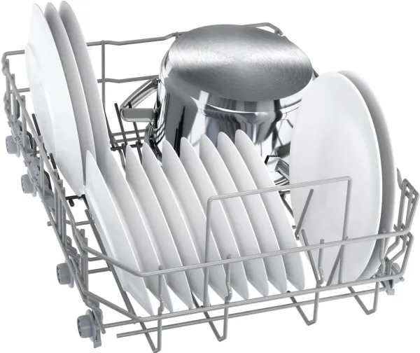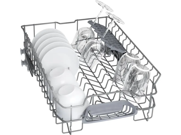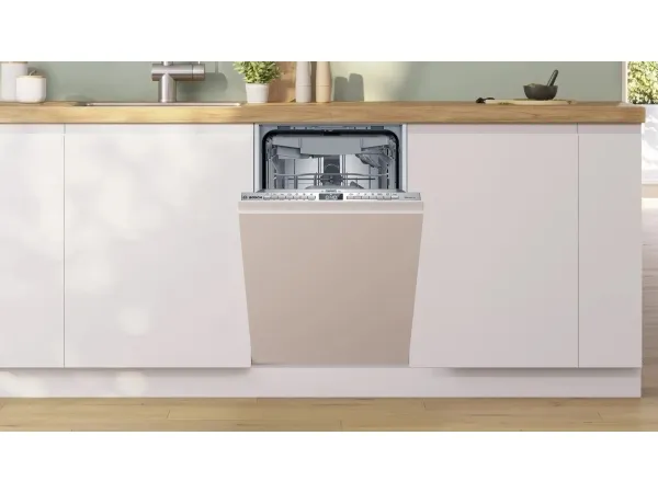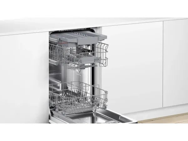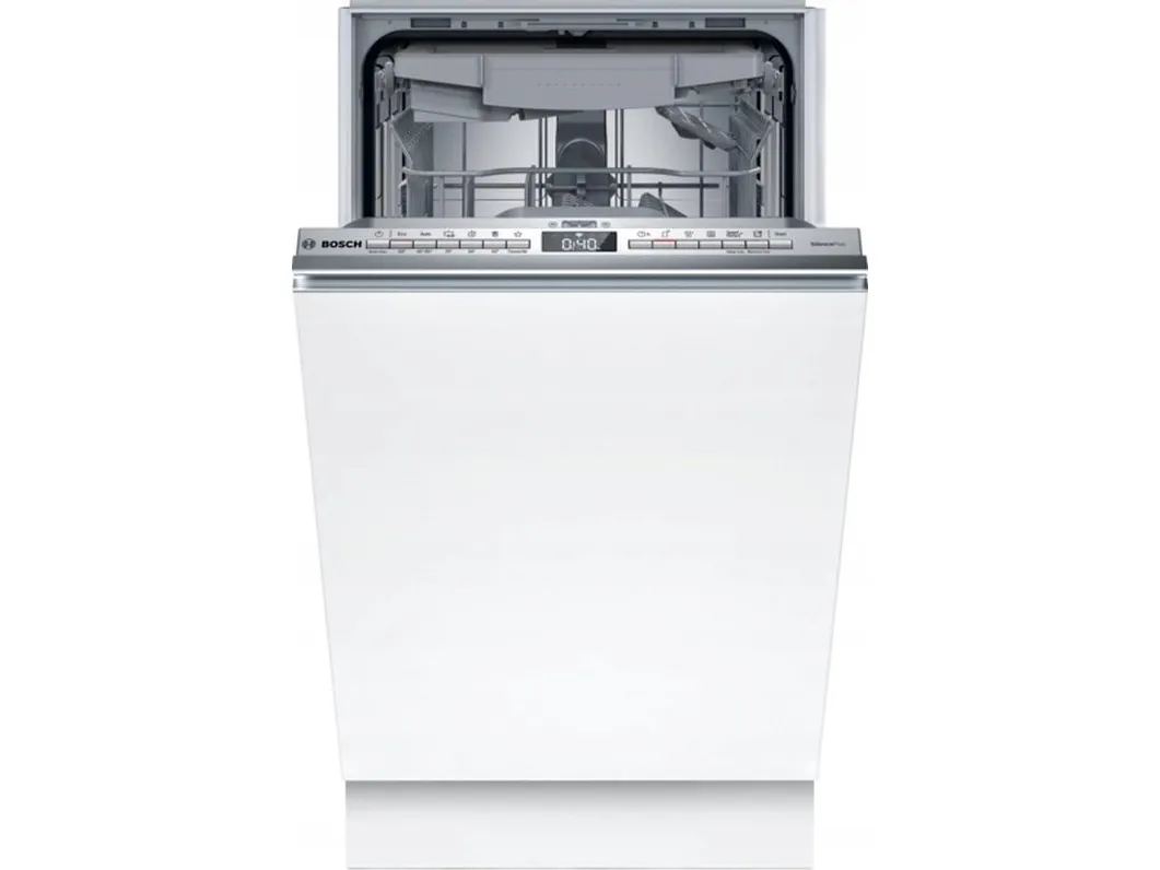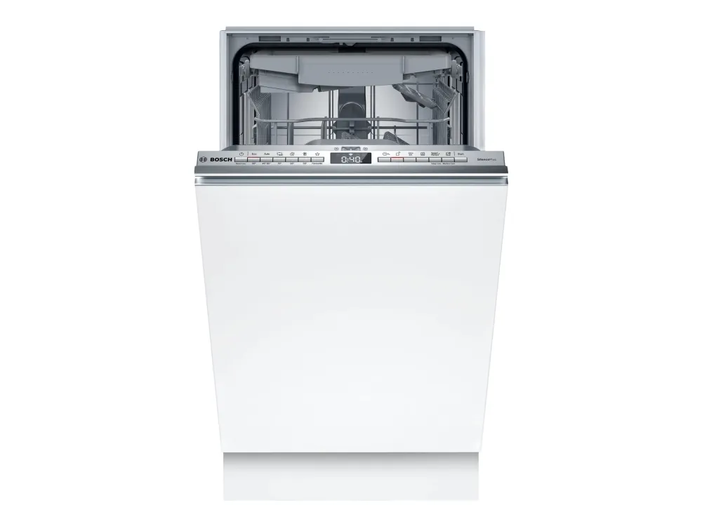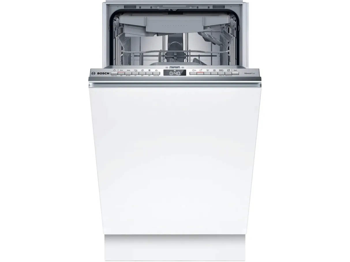 Bosch Serie 4 SPV4HMX10E. Appliance placement: Fully built-in, Product size: Compact, Control type: Buttons. Number of place settings: 10 place settings, Noise emission class: B, Noise level: 44 dB. Feet adjustment: 6 cm, Apps supported: Home Connect. Energy efficiency class: E, Water consumption per cycle: 9.5 L, Energy consumption per 100 cycles: 76 kWh. Width: 448 mm, Depth: 550 mm, Height: 815 mm