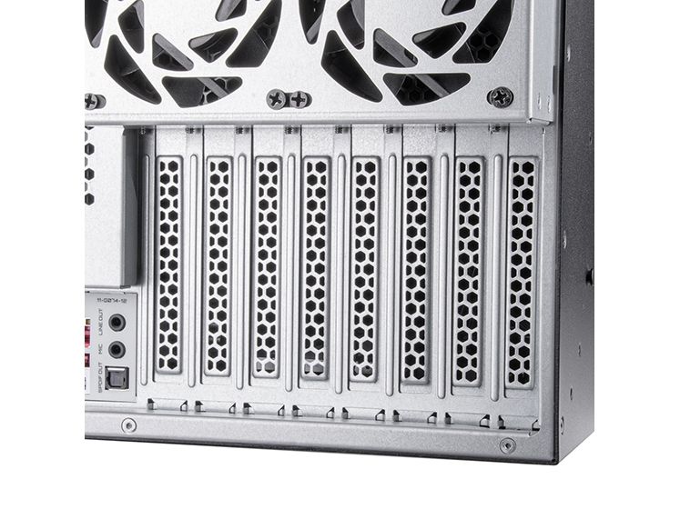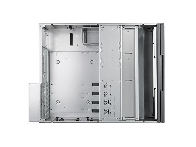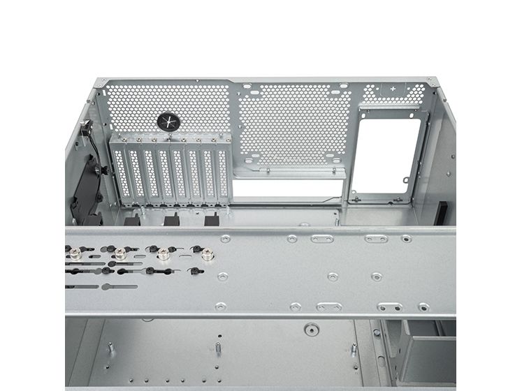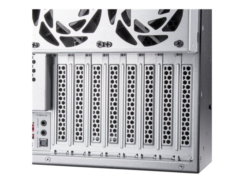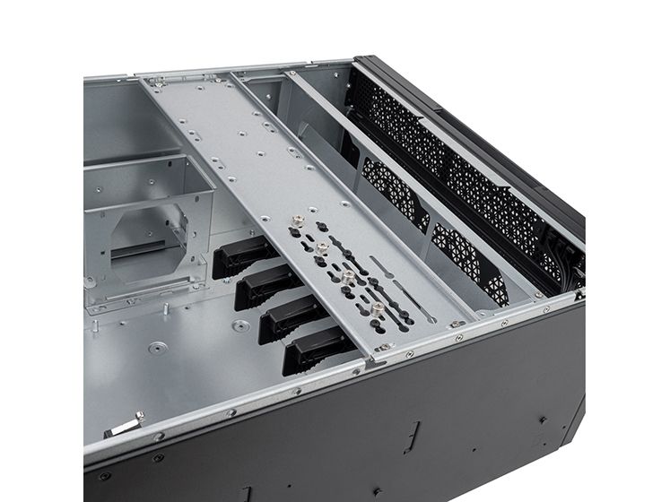 The SilverStone RM52 system cabinet is engineered for versatility and performance, catering to the needs of demanding computing environments. Its rack-mountable design not only ensures a secure installation but also supports a wide range of motherboard form factors, from ATX to SSI EEB, providing flexibility for system builders. The RM52 stands out with its comprehensive cooling options, supporting multiple radiator configurations and fan setups to maintain optimal system temperatures. Storage capacity is abundant, with 8 internal bays that accommodate both 2.5" and 3.5" drives, making it suitable for users with extensive data storage needs. Connectivity is streamlined through the inclusion of USB-C and USB 3.0 ports, offering easy access to high-speed data transfers. Constructed from durable steel and equipped with HDD, LAN, and power status indicators, the RM52 is built to last, making it an ideal choice for users seeking a reliable and high-performance system cabinet.