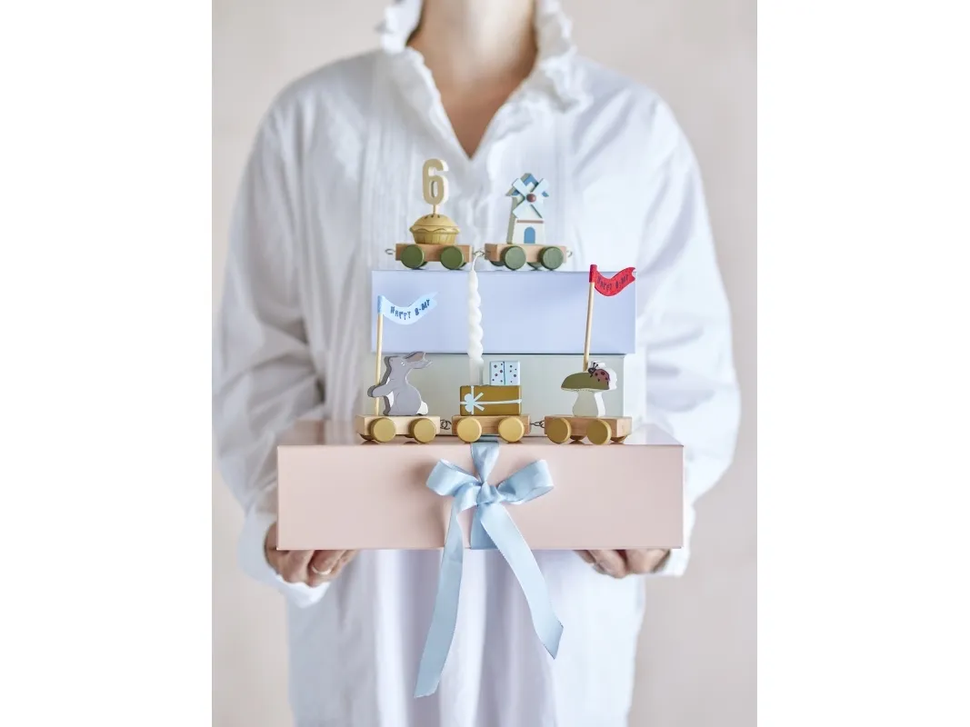 Die Alfi Geburtstagsdekoration von Bloomingville MINI besteht aus MDF. Dieser neue Geburtstagszug ist super süß mit einem Erntethema und perfekt, um den Tisch zu schmücken, wenn Freunde und Familie zum Feiern vorbeikommen. Es kommt in einer schönen Geschenkbox mit einer Flagge in Blau und Rot und Zahlen von 0-9.