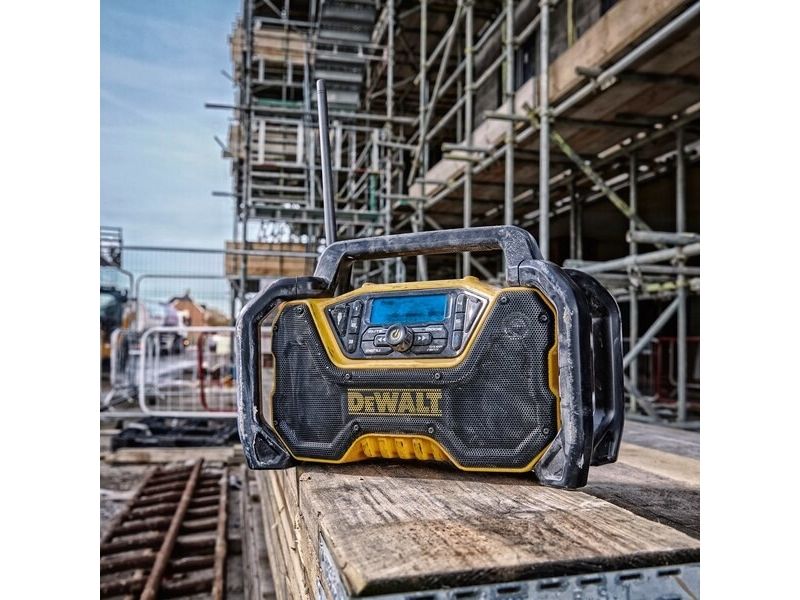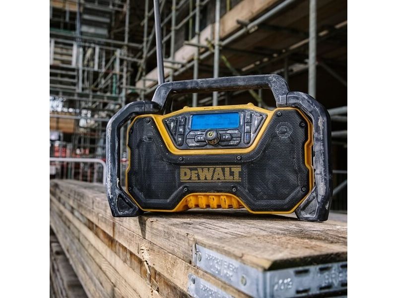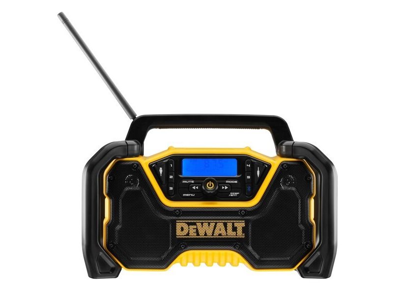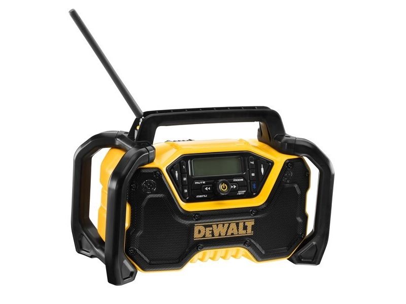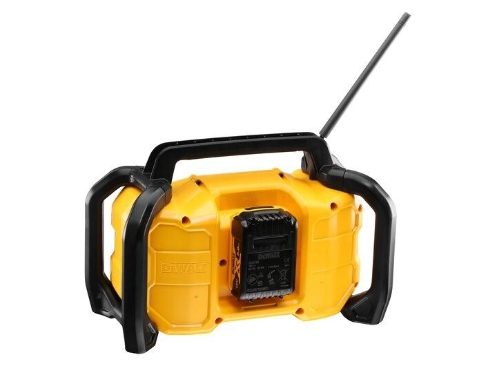 - Compact DAB/FM Radio with upgraded for high volume audio without distortion. - Bluetooth connectivity, with AVRCP controls allowing you to control streaming audio either on the unit or on your mobile device. - Durable construction with external roll-cage for drop protection. - USB charging output on both AC and DC power. - Accepts 12V XR, 18V XR and 18/54V XR FLEXVOLT batteries. - Detachable mains power supply for AC power input.DeWALT DCR029-QW. Radio type: Portable, Supported radio bands: DAB, FM. Product colour: Black, Yellow. Power source: AC/DC, AC input voltage: 12/18/54 V