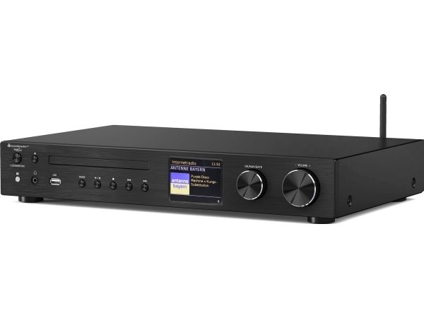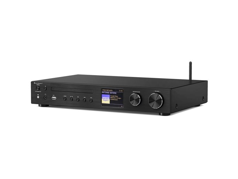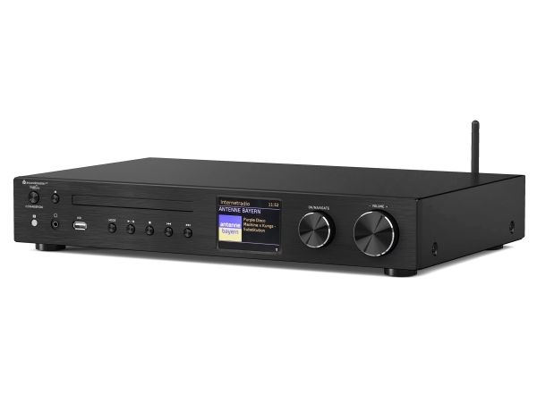 • Internet radio with WLAN 2.4/5 GHz & LAN • DAB+/FM-RDS radio • CD, CD-R/RW, CD-MP3 • USB-MP3 playback • Optical digital audio input • Bluetooth® reception • Last track resume • 30 preset stations each • 3,2" colour display • Control via UNDOK APP with mobile phone/tablet • 3.5 mm headphone jack • Coaxial digital audio output • RCA (chinch) line in • 75-ohm F-antenna jack • Output for active sub-woofer • Equalizer - pre-programmed sound settings • Dual alarm with weekend function • Sleep/snooze timer • Remote control • Power amplifier with 2 x 50 W RMS output power • Mains operation AC 230 V ~ 50 Hz