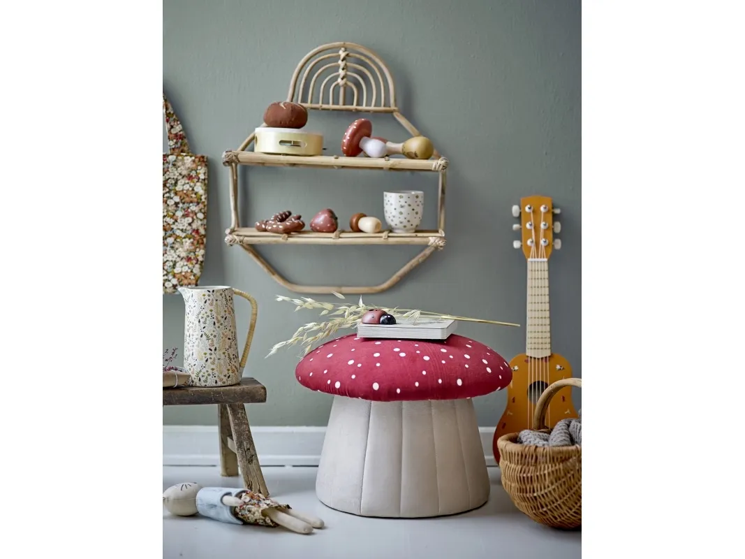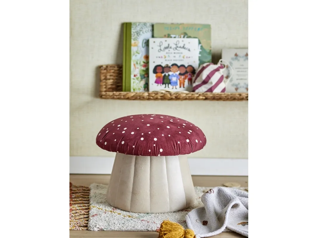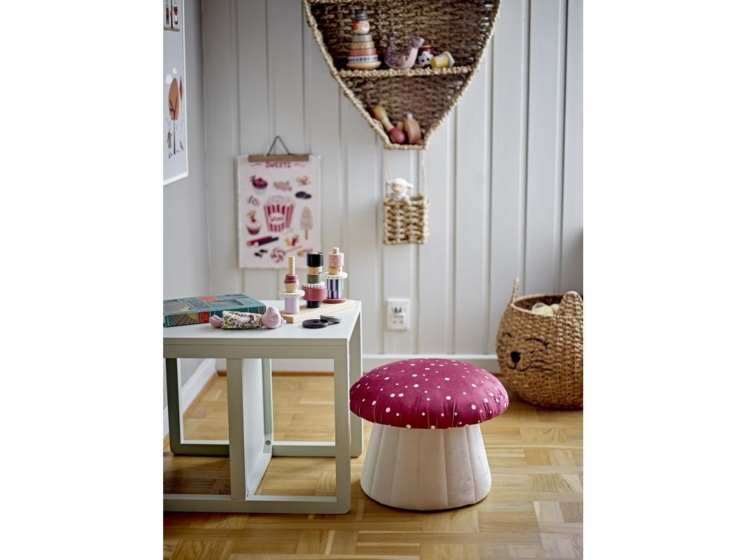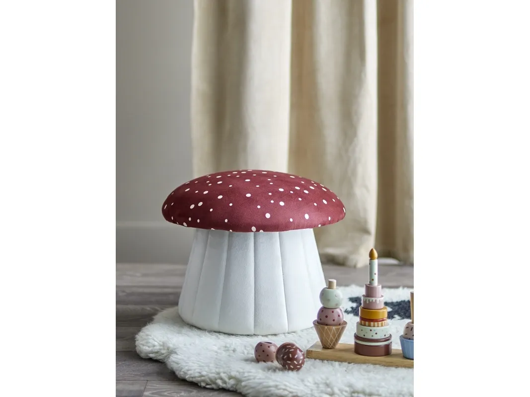 Der Lue Pouf von Bloomingville MINI ist ein hübsches und gemütliches Möbelstück für das Kinderzimmer. Der Sitzpuff besteht aus Polyestergewebe und hat eine Pilzform. Der Sitzpuff kann als Fußstütze oder Stuhl verwendet werden und hat ein tolles rot-weißes Muster.